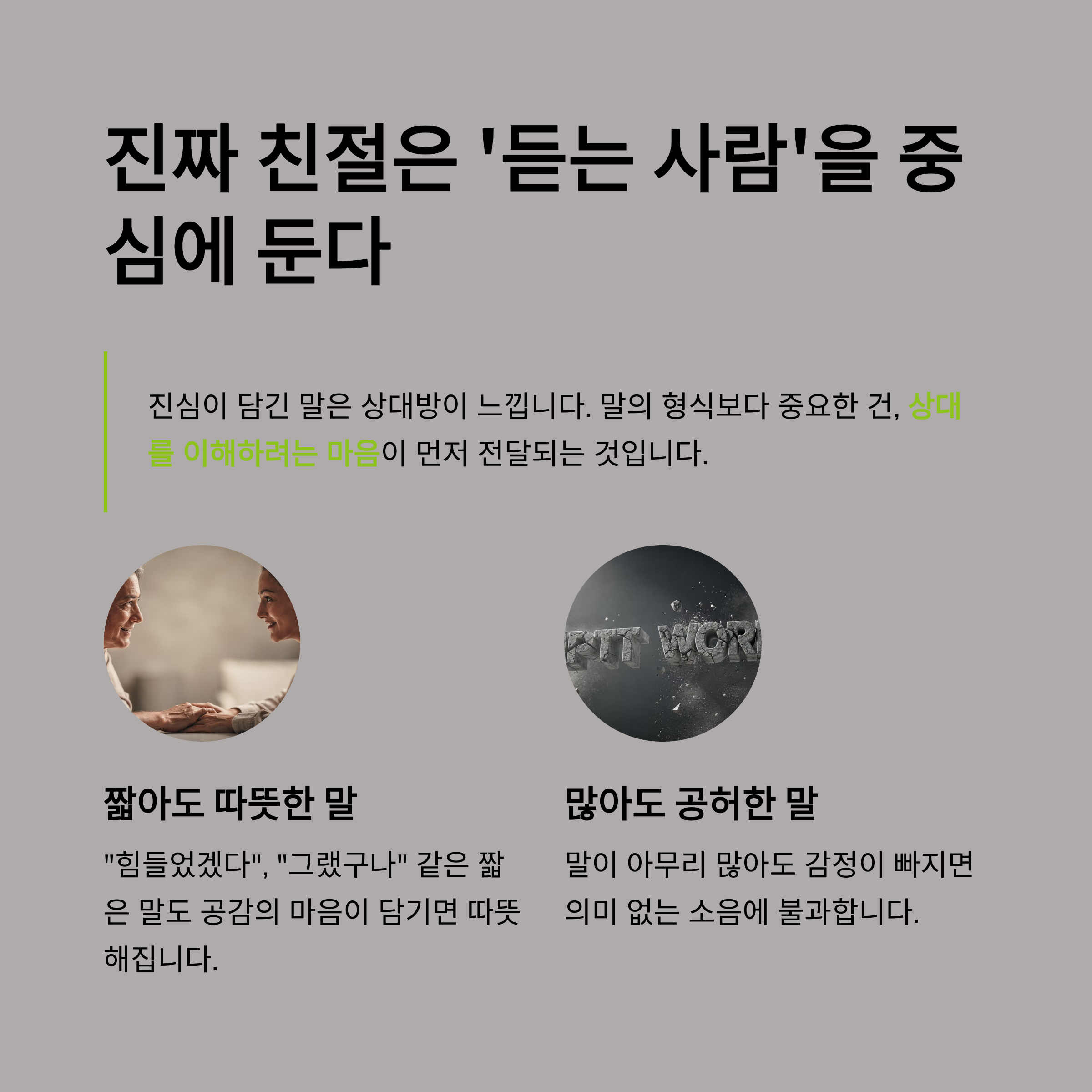 말의 형식보다 중요한 건, 상대를 이해하려는 마음이 먼저 전달되는 거예요.