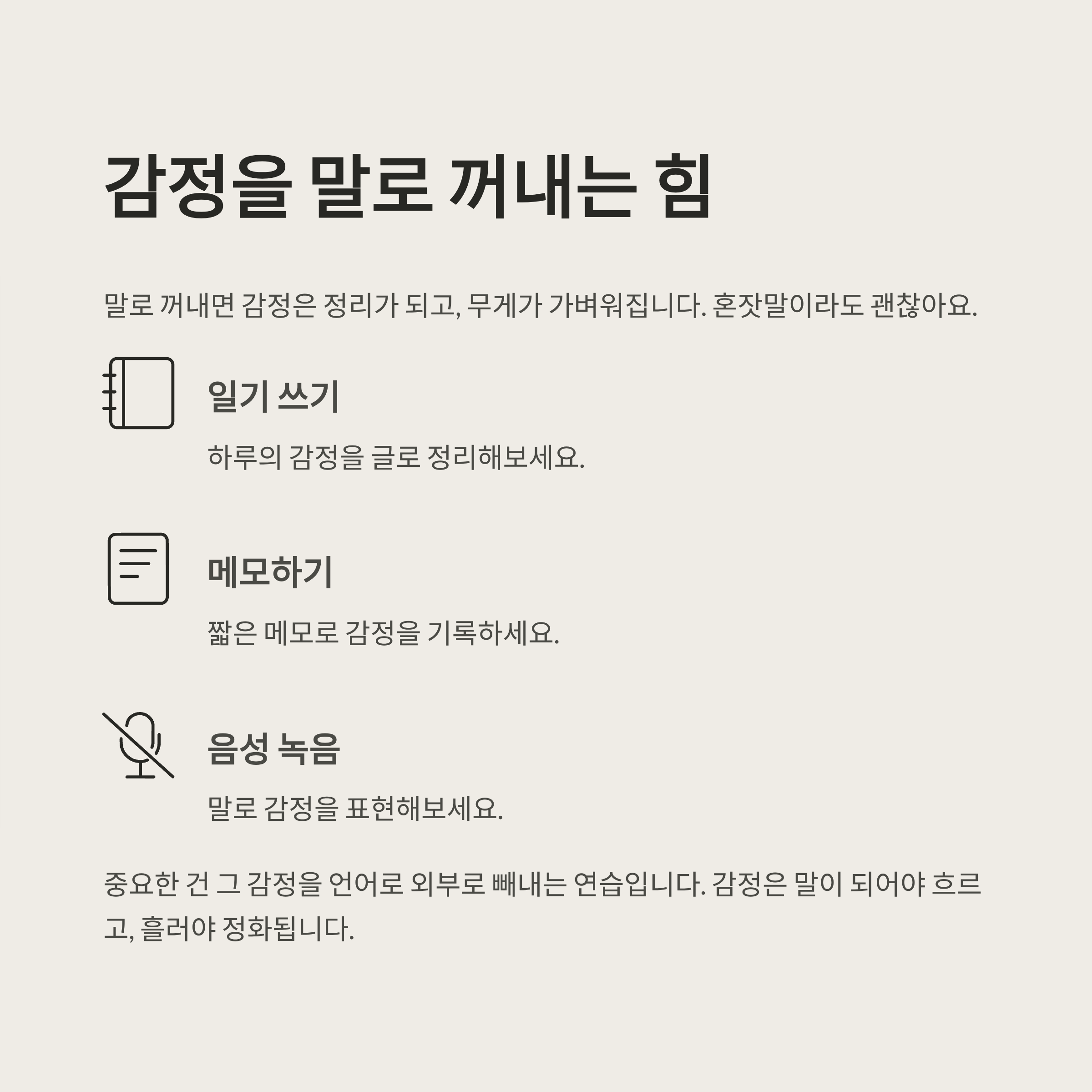 말로 꺼내면 감정은 정리가 되고, 무게가 가벼워집니다.