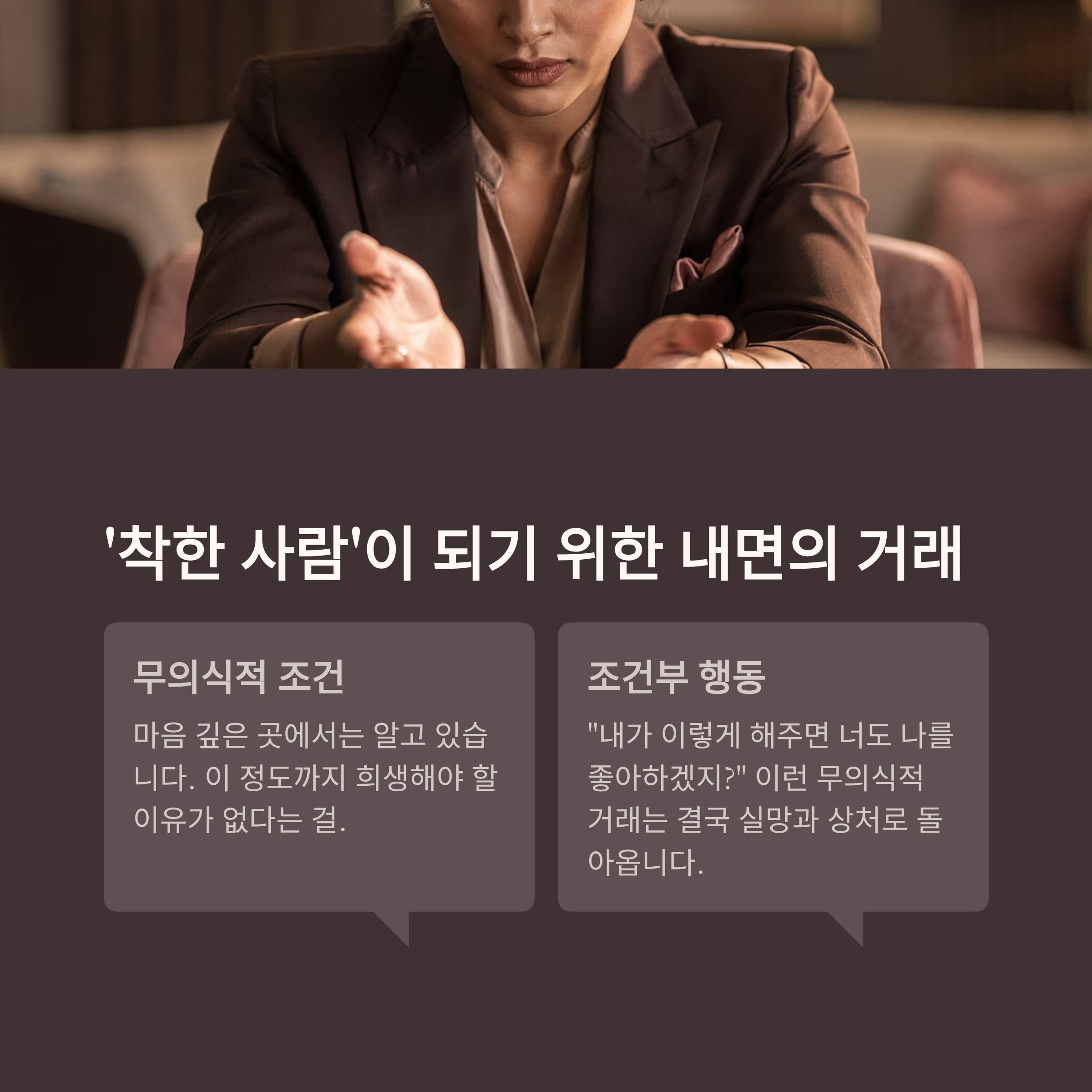 이런 무의식적 거래는 결국 실망과 상처로 돌아옵니다.