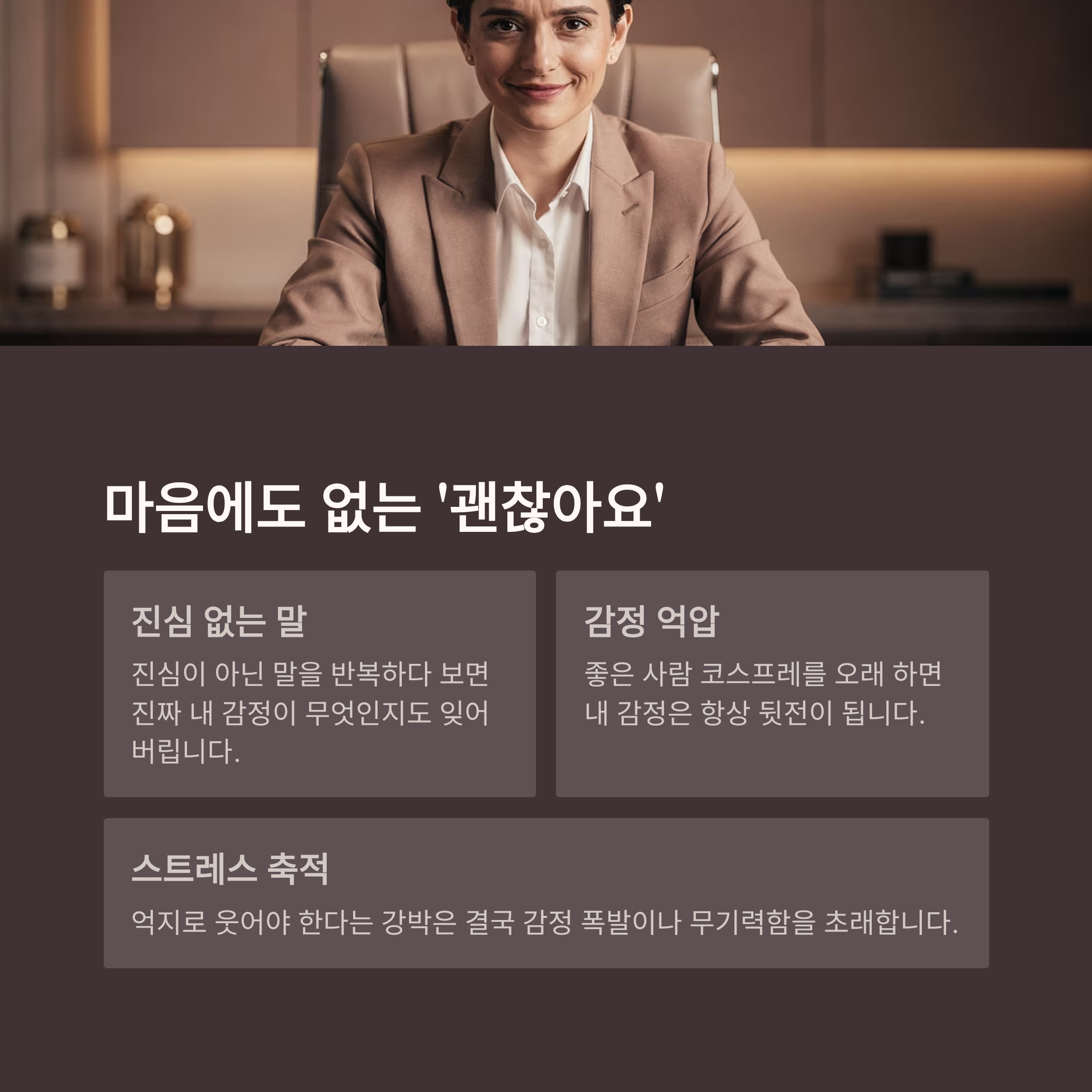 억지로라도 웃어야 한다는 강박은 스트레스를 축적시키고,