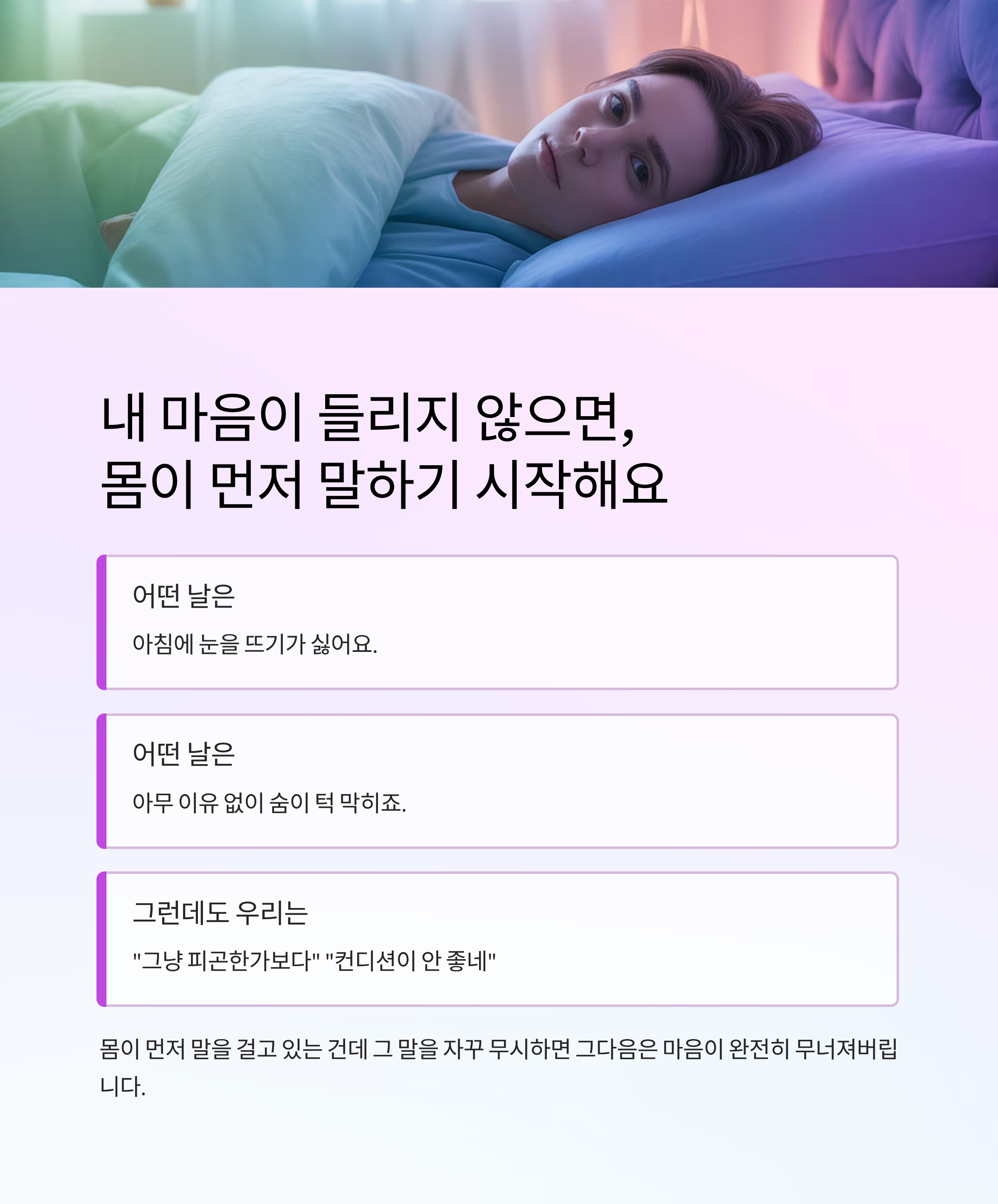 내 마음이 들리지 않으면, 몸이 먼저 말하기 시작해요