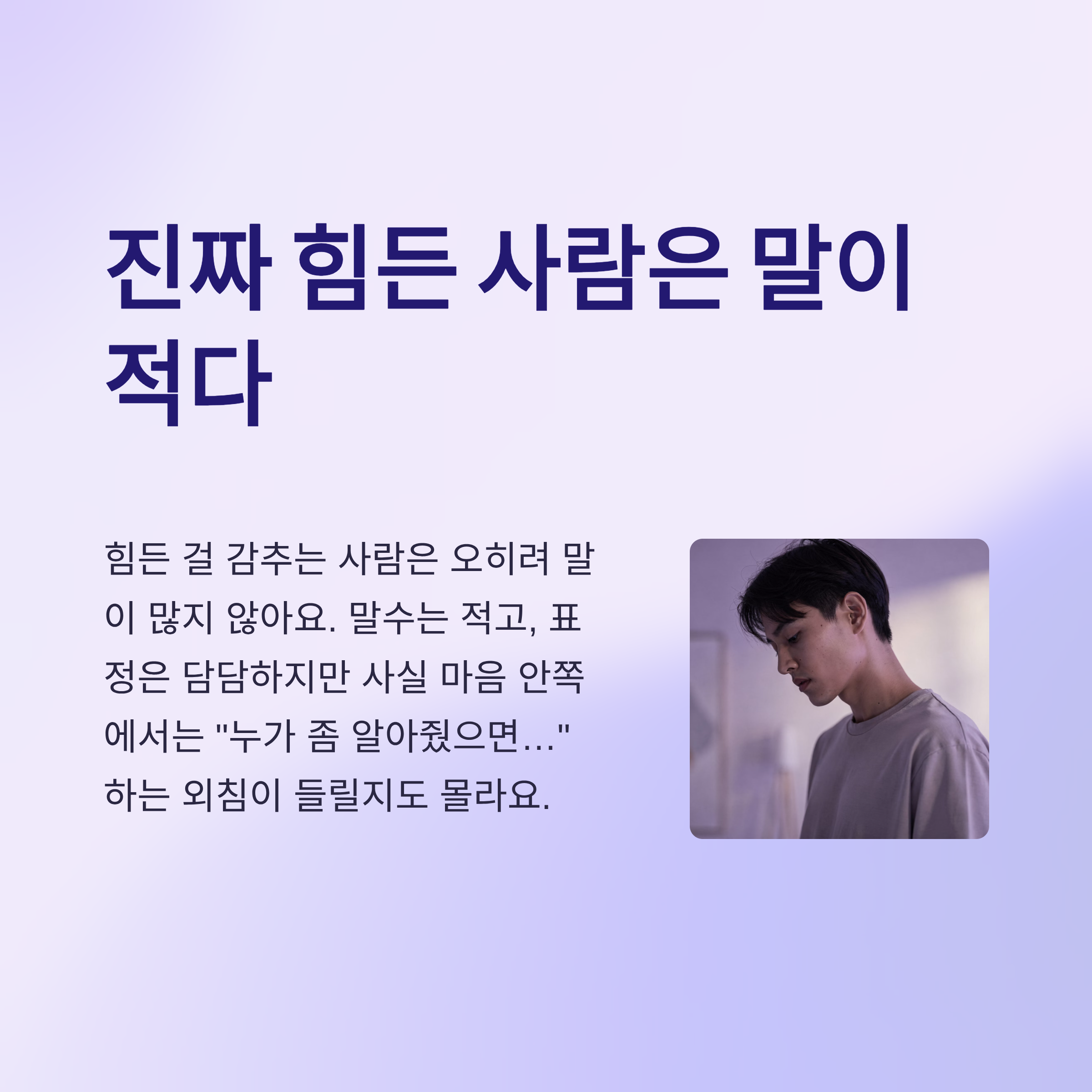 힘든 걸 감추는 사람은 오히려 말이 많지 않아요.