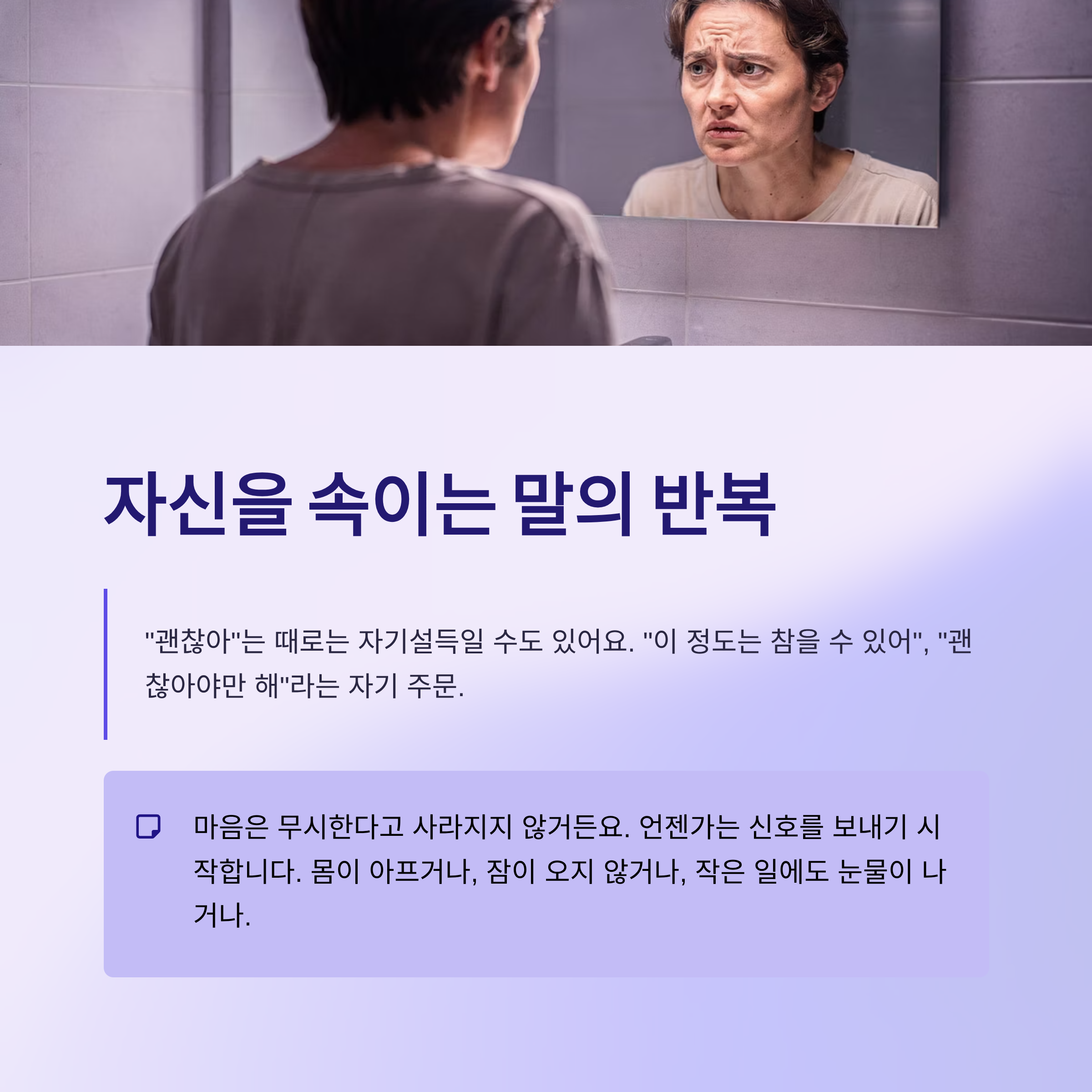 “괜찮아”는 때로는 자기설득일 수도 있어요.
