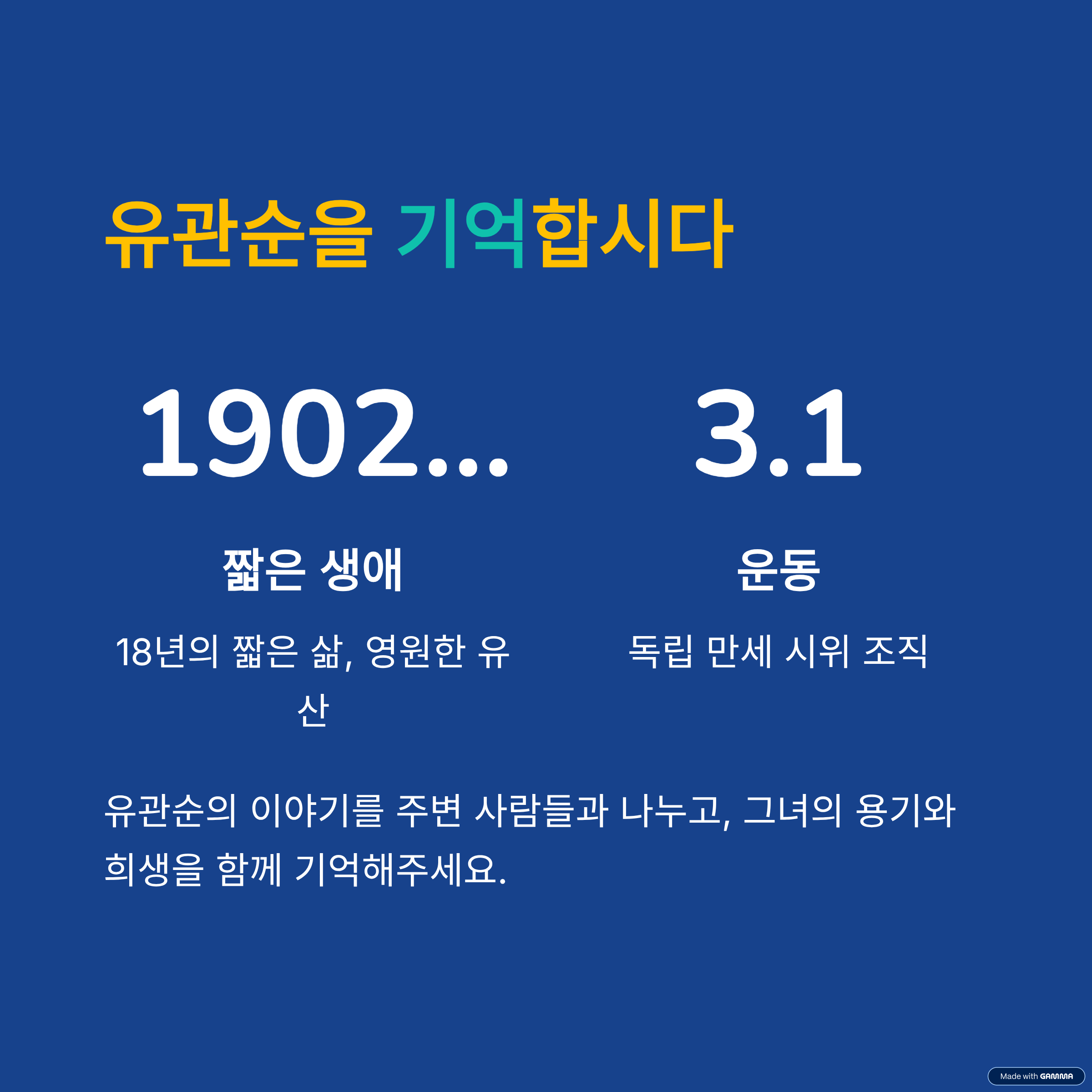그녀의 삶은 짧았지만, 그 의지는 백 년이 지난 지금도 여전히 빛나고 있습니다.