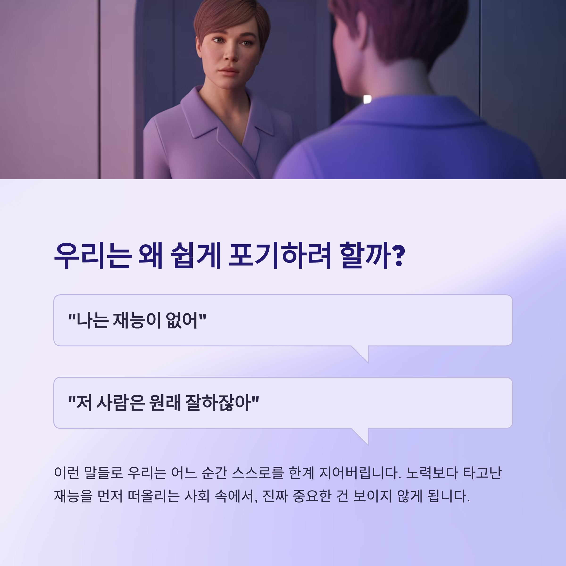 노력보다 타고난 재능을 먼저 떠올리는 사회의 분위기 속에서,