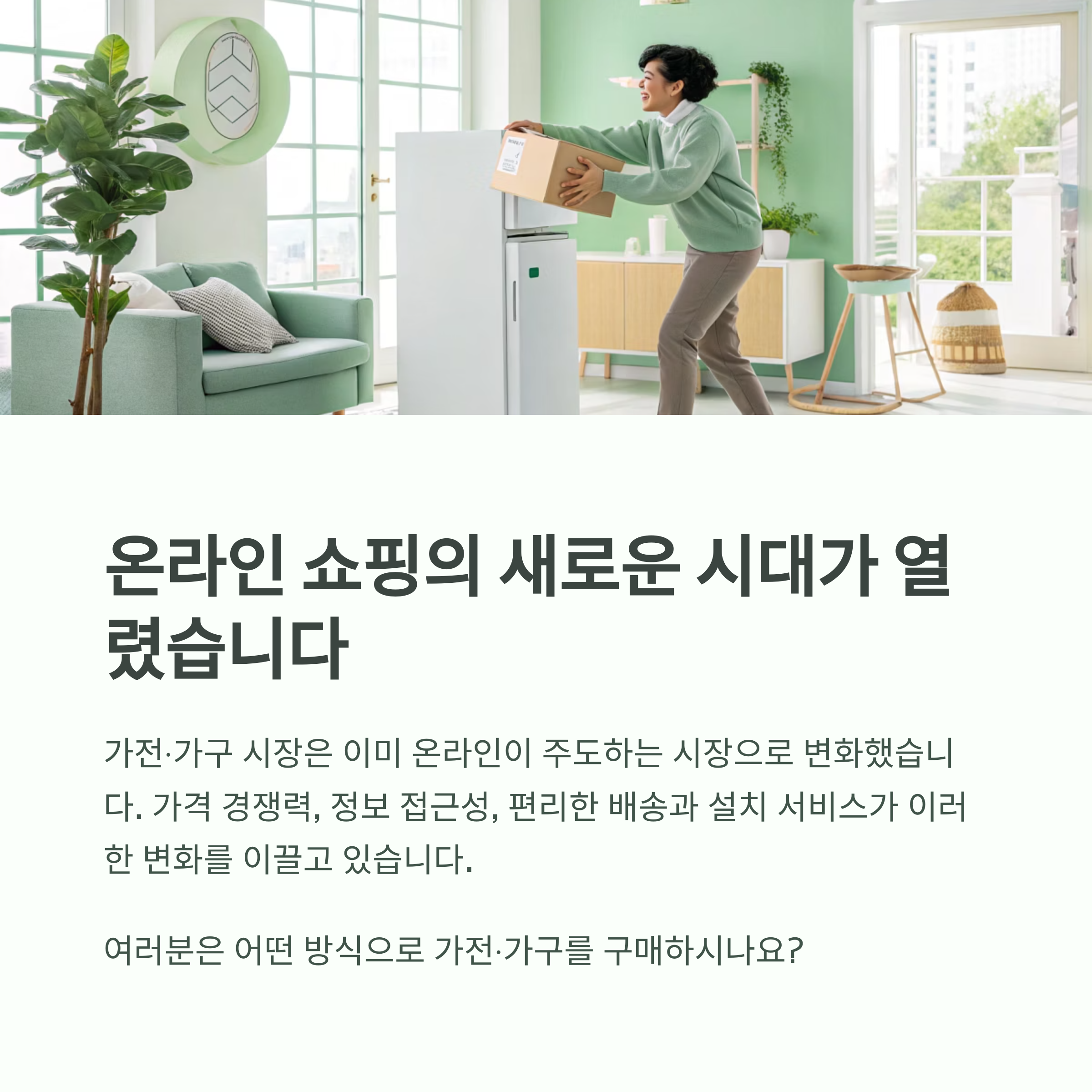 가전·가구 시장의 온라인화는 더 이상 예외적 흐름이 아니라 중심축이 되었습니다.