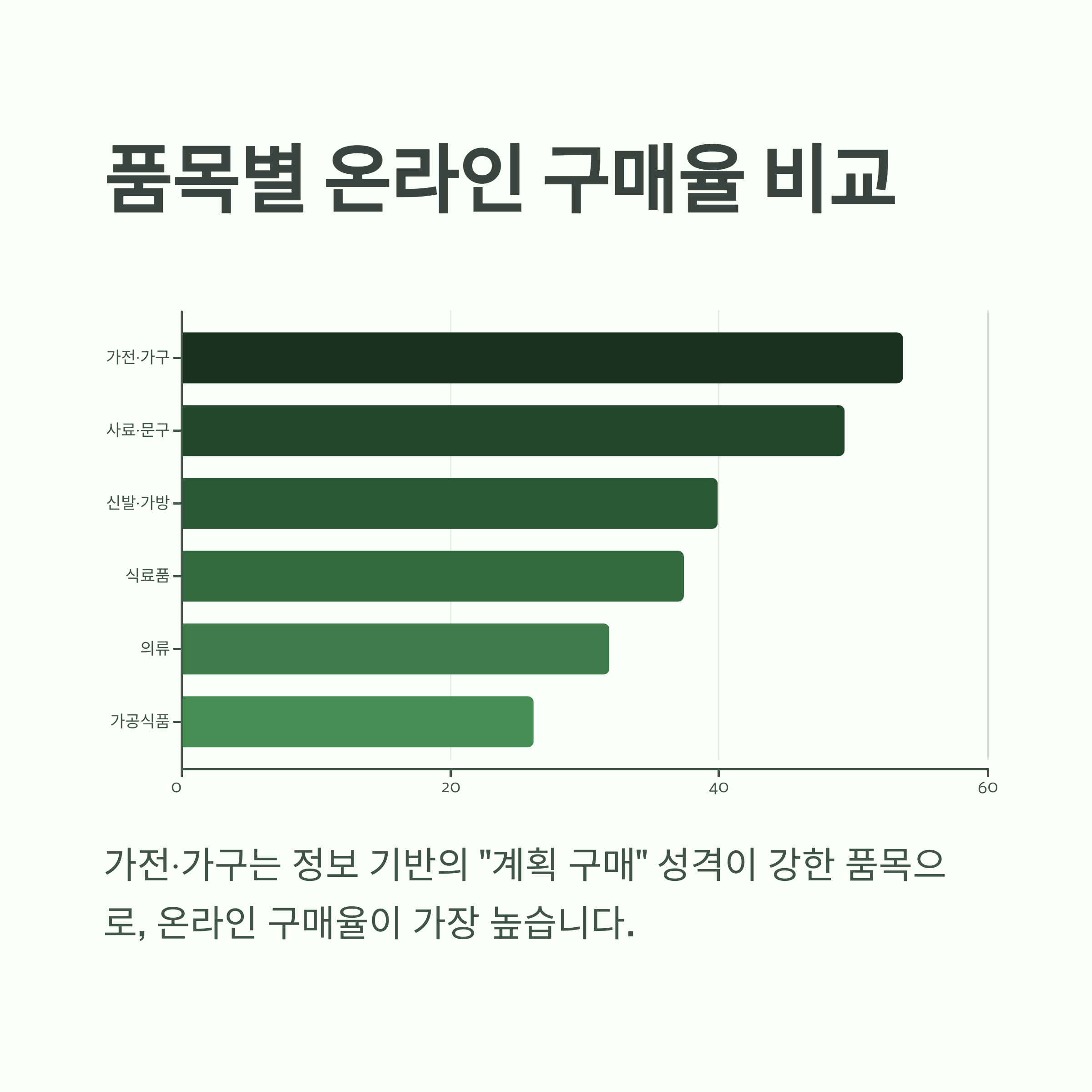 가전·가구 제품군은 그 중심에서 가장 빠른 온라인 전환을 보여주고 있습니다.