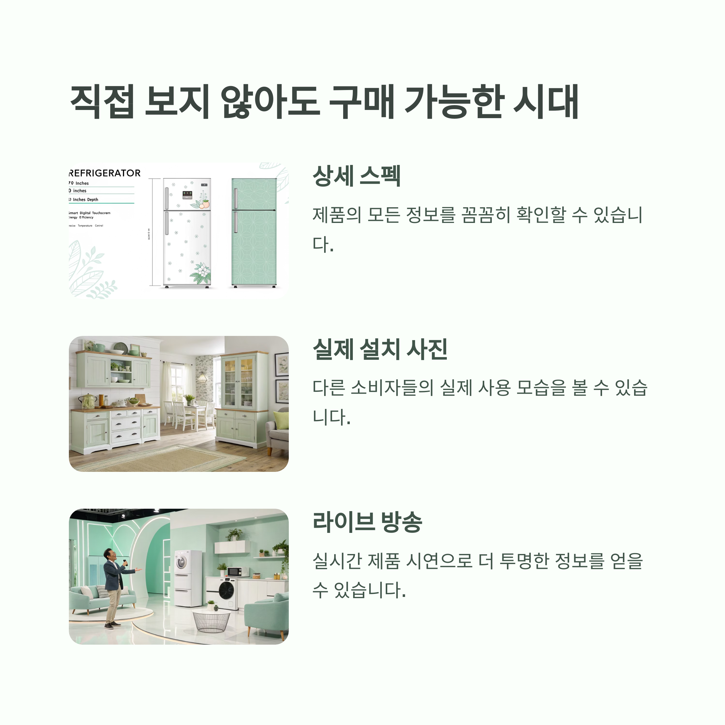 예전에는 제품을 직접 눈으로 보고 만져봐야 안심하고 구매할 수 있다는 소비자 심리가 강했지만,