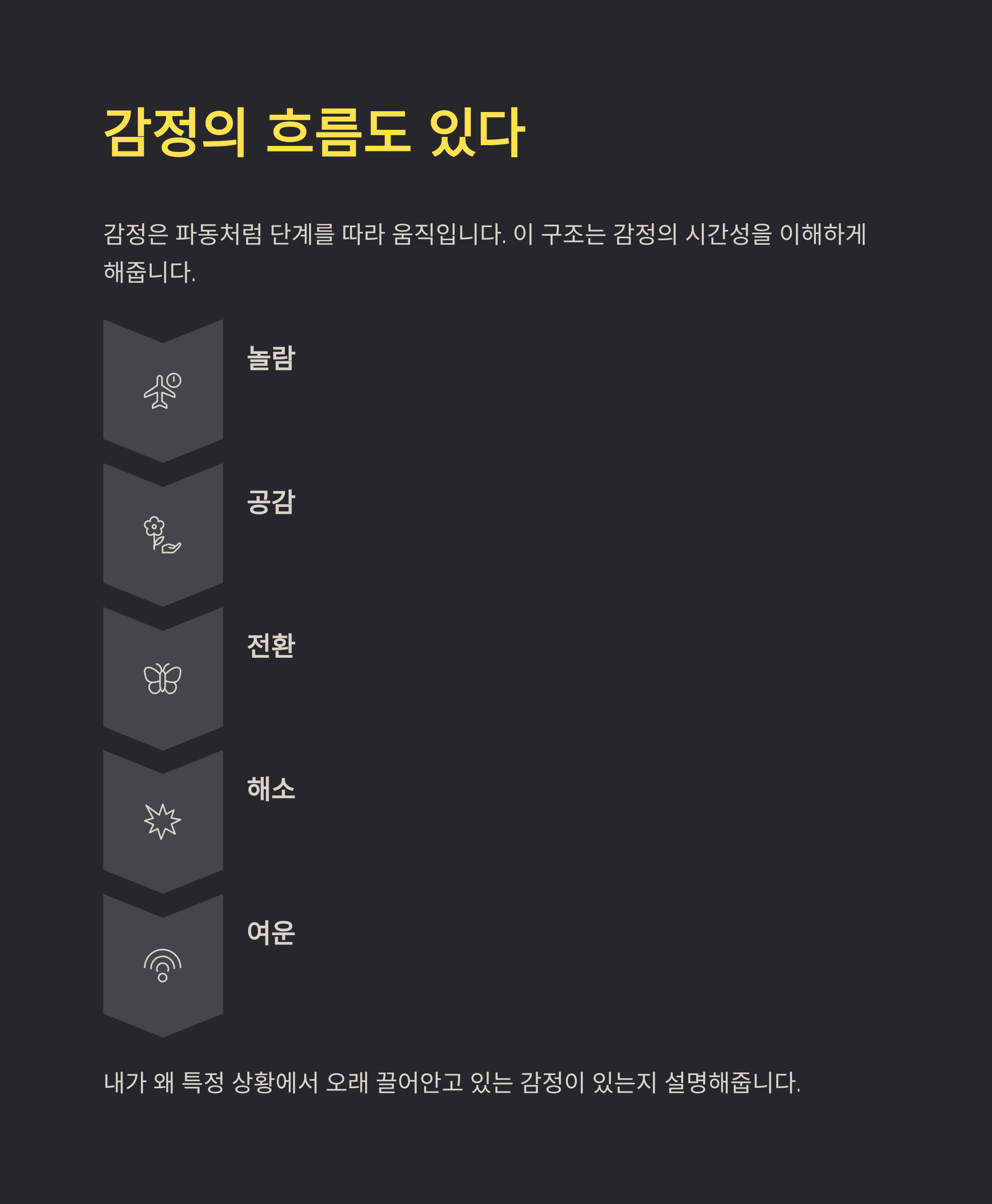 즉, 감정은 한 번에 폭발하는 것이 아니라 과정을 따라 구성됩니다.