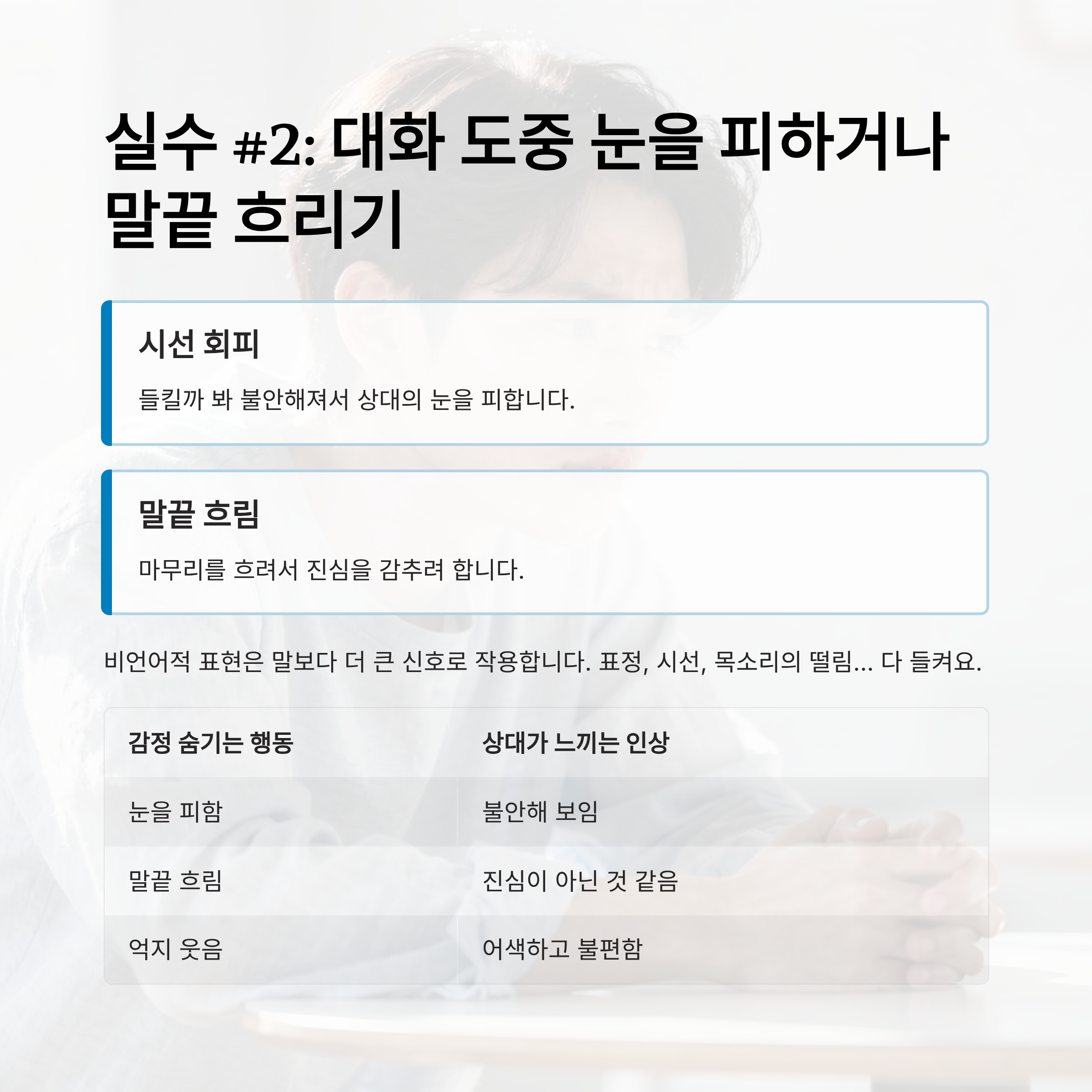 2. 대화 도중 눈을 피하거나 말끝 흐리기