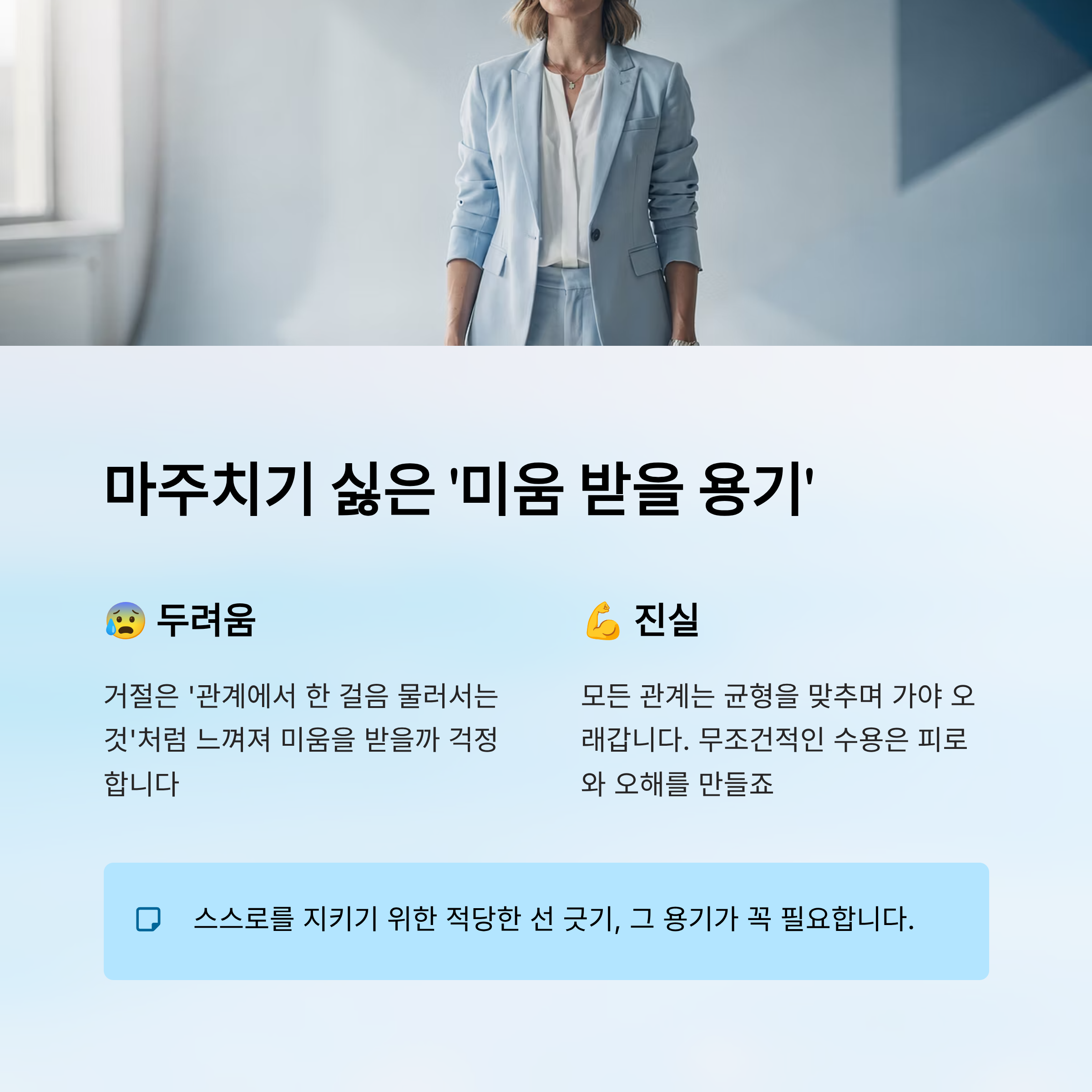 무조건적인 수용은 결국 피로와 오해를 만들게 되죠.