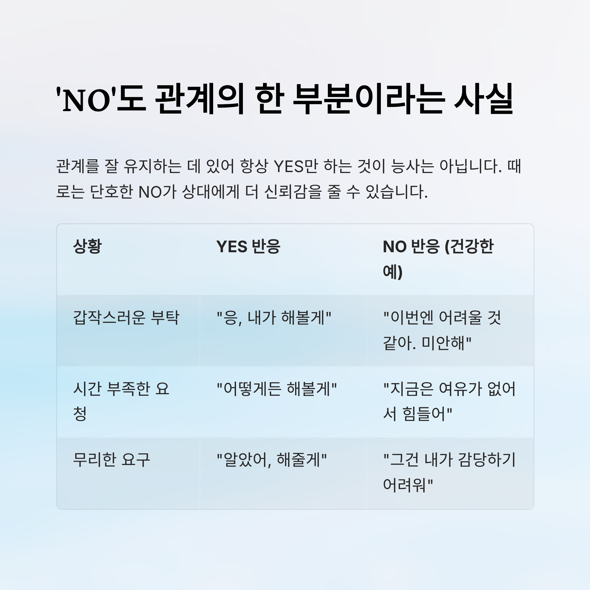 갑작스러운 부탁 "응, 내가 해볼게" "이번엔 어려울 것 같아. 미안해"
