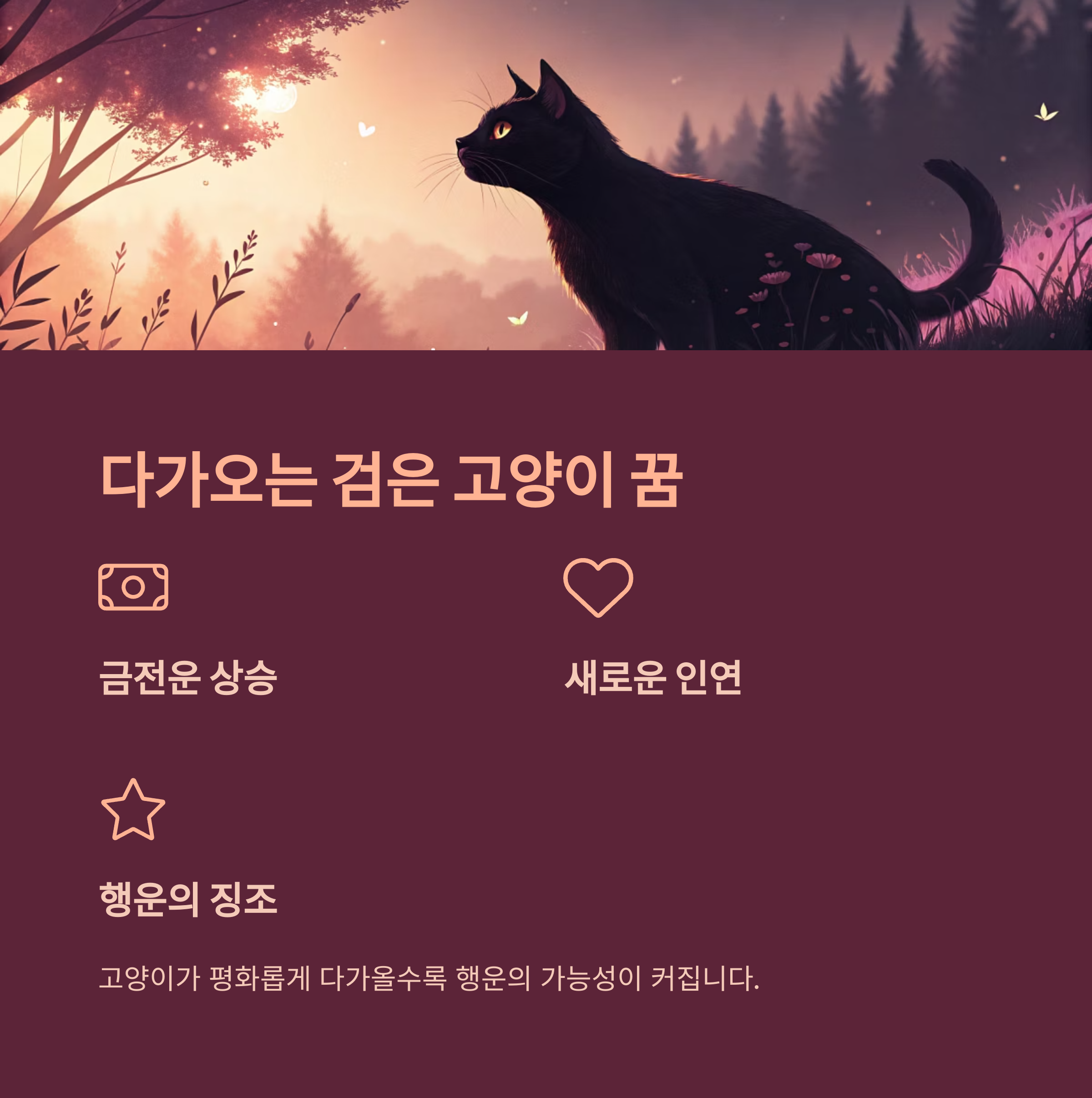 "검은 고양이 꿈은 무조건 불길하다고 보기 어렵습니다."
