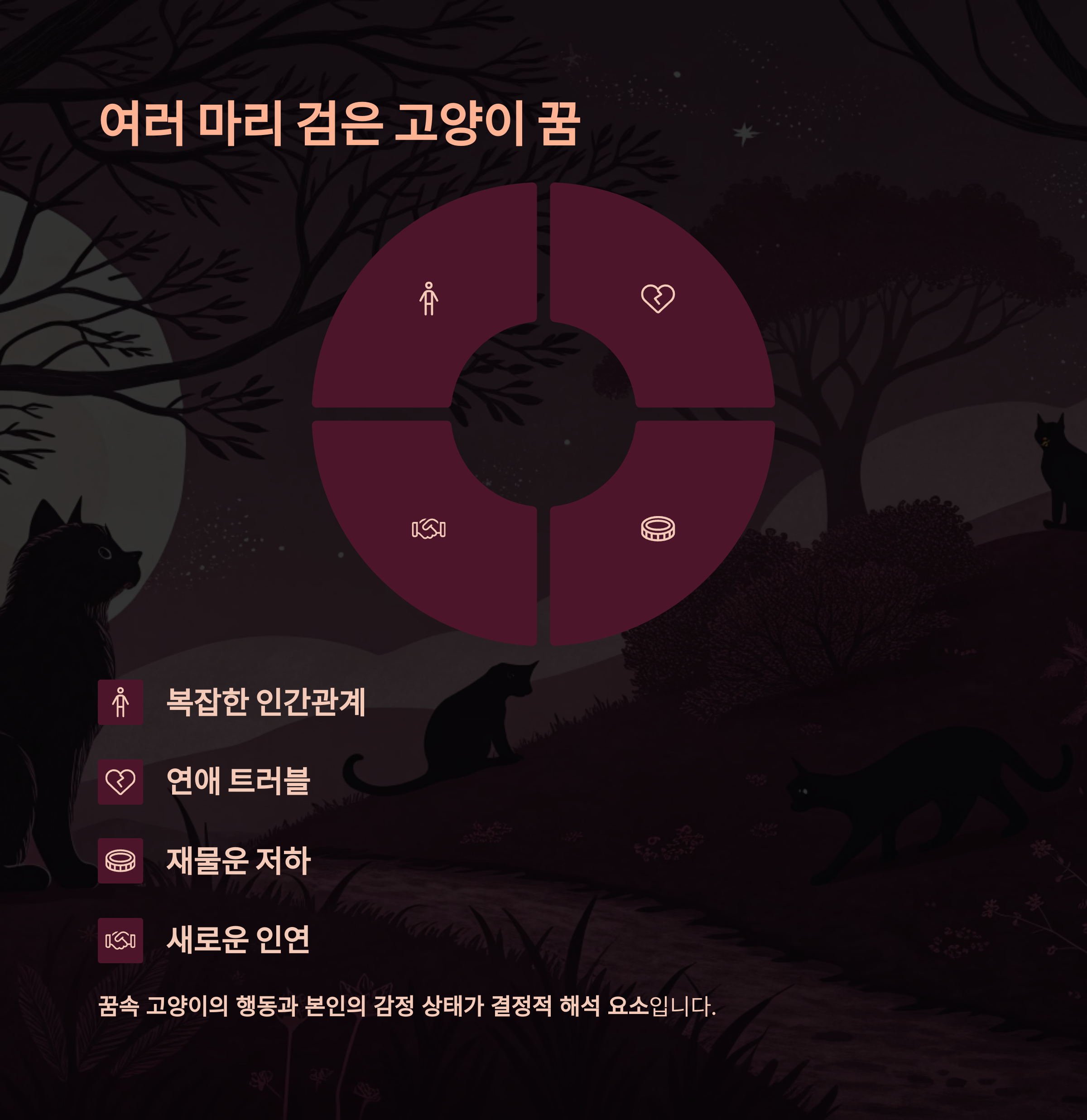 "꿈속 고양이의 행동과 본인의 감정 상태가 결정적 해석 요소"로 작용합니다.