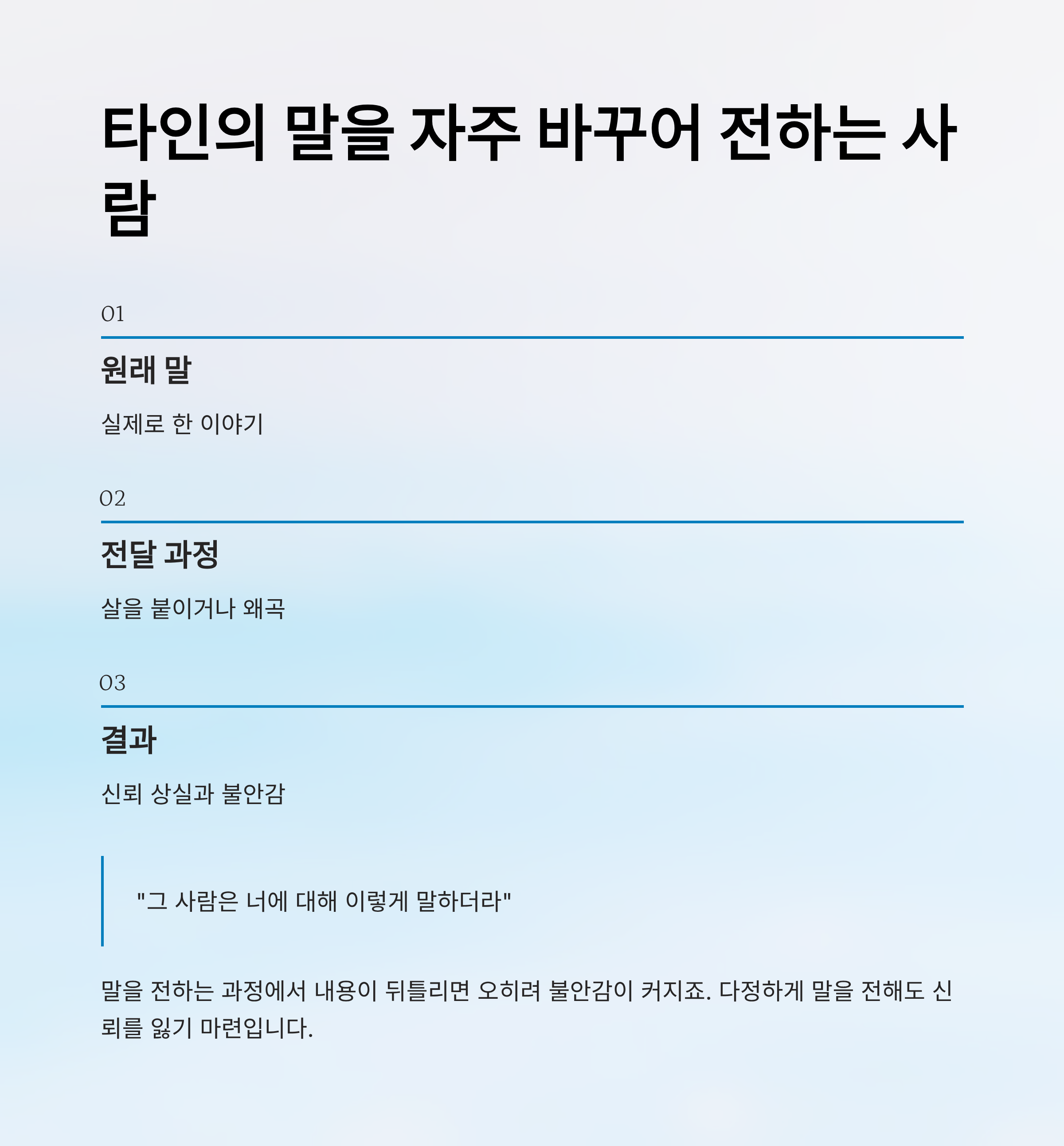 말을 전하는 과정에서 살을 붙이거나 왜곡하는 사람은 신뢰를 잃기 마련입니다.