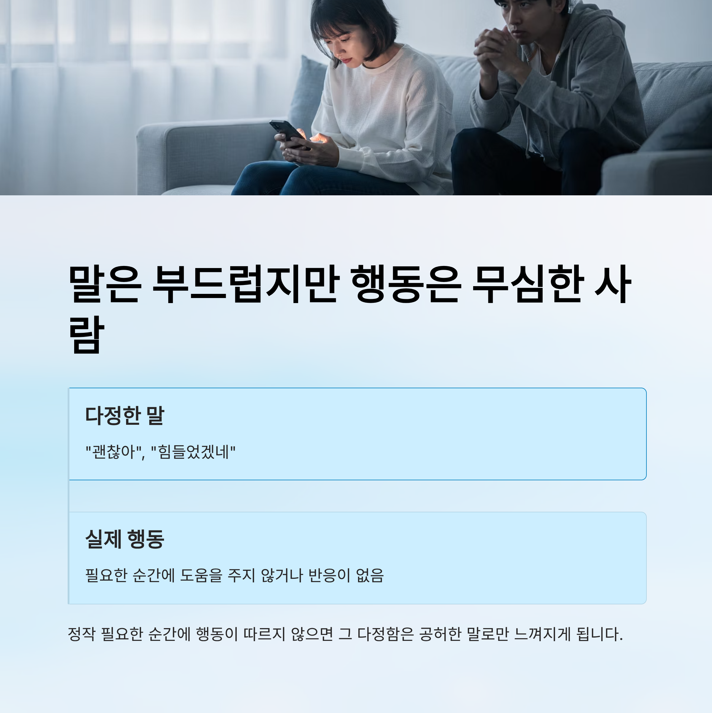 그 다정함이 진심이 아닌 ‘전략’으로 느껴질 수 있습니다.