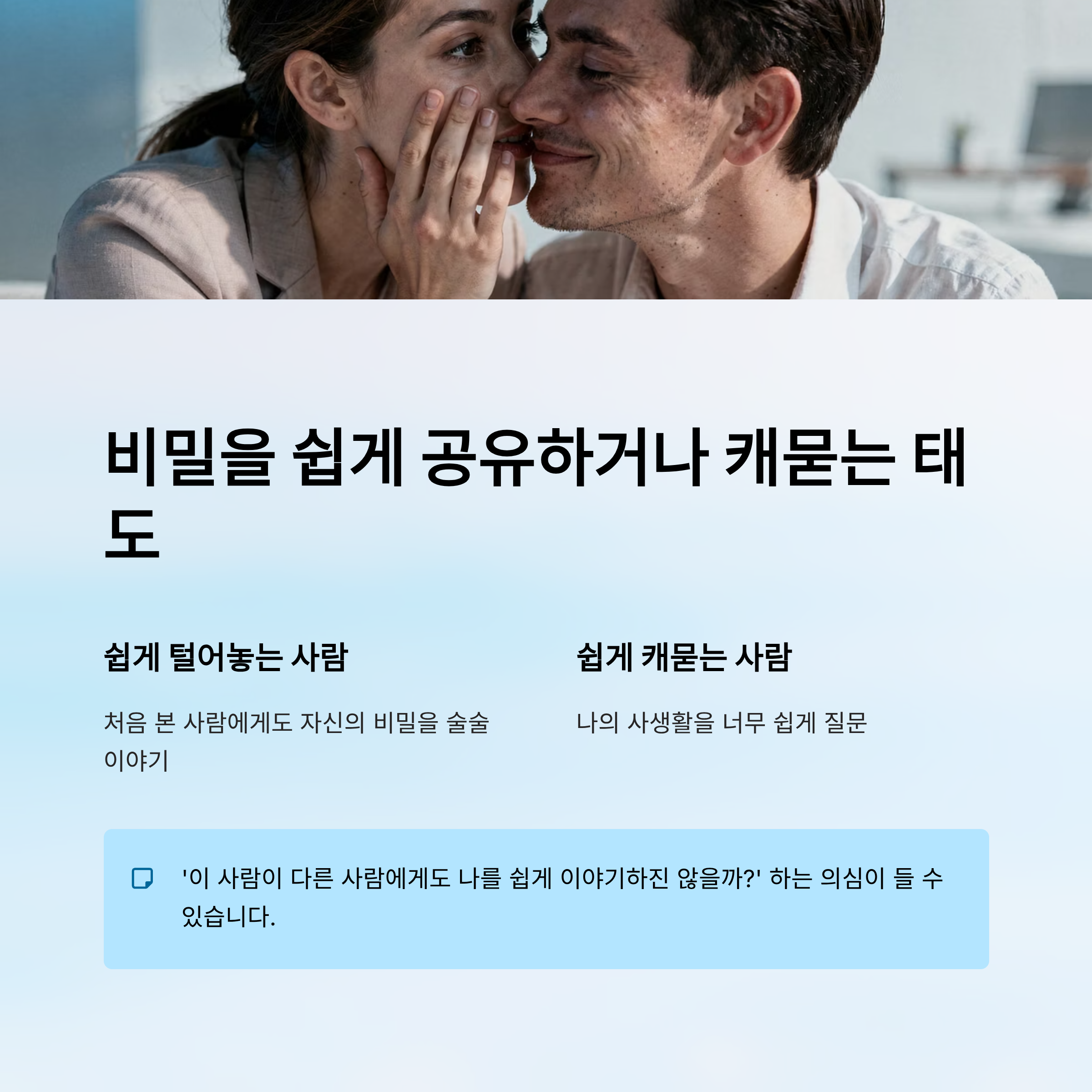 이런 경우 ‘이 사람이 다른 사람에게도 나를 쉽게 이야기하진 않을까?’ 하는 의심이 들 수 있습니다.