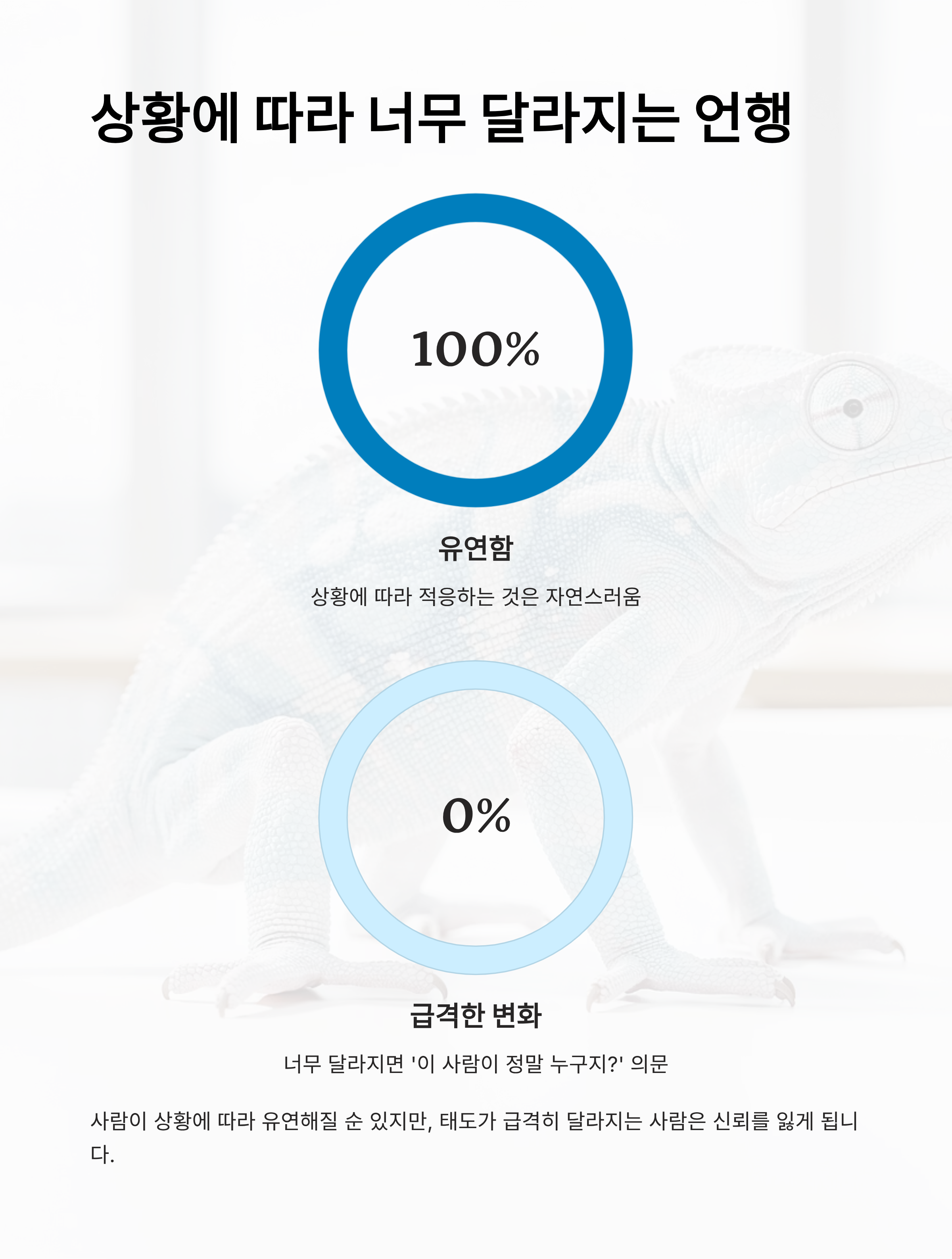 상황에 따라 너무 급격히 태도가 달라지는 사람은