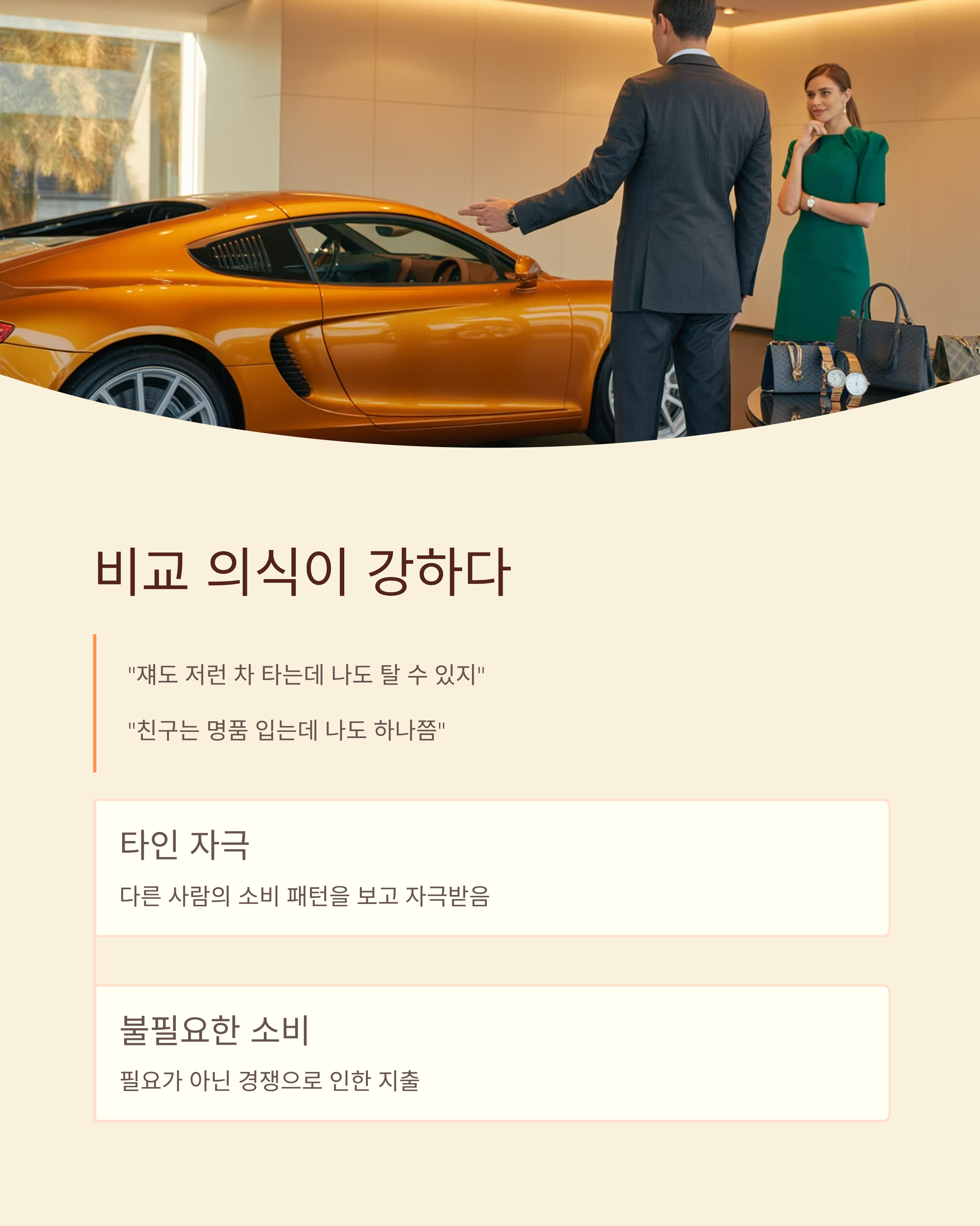 "쟤도 저런 차 타는데 나도 탈 수 있지", "친구는 명품 입는데 나도 하나쯤" 하는 식의 비교가