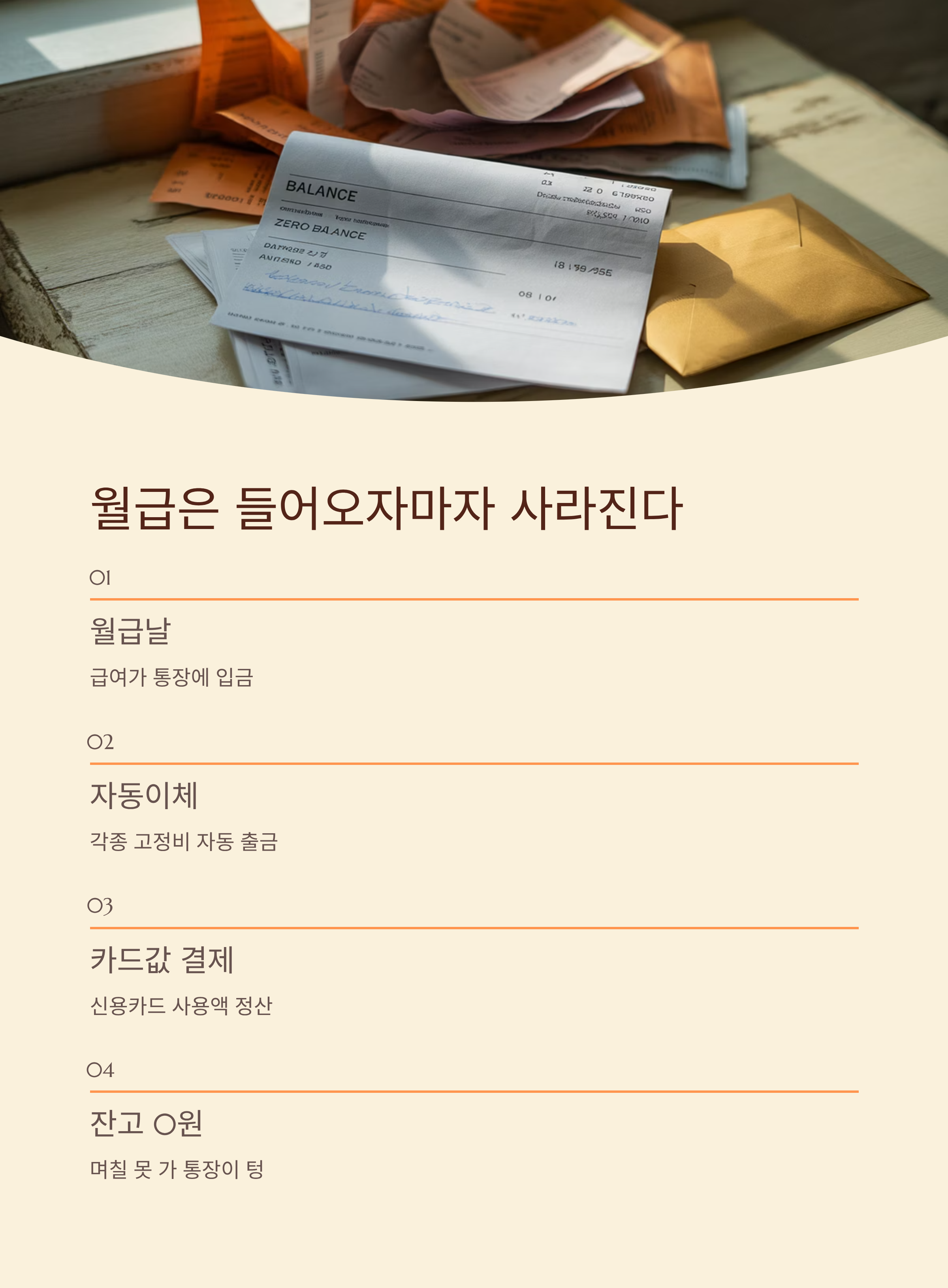 월급날이 돌아와도 며칠 못 가 잔고는 0원이 됩니다.