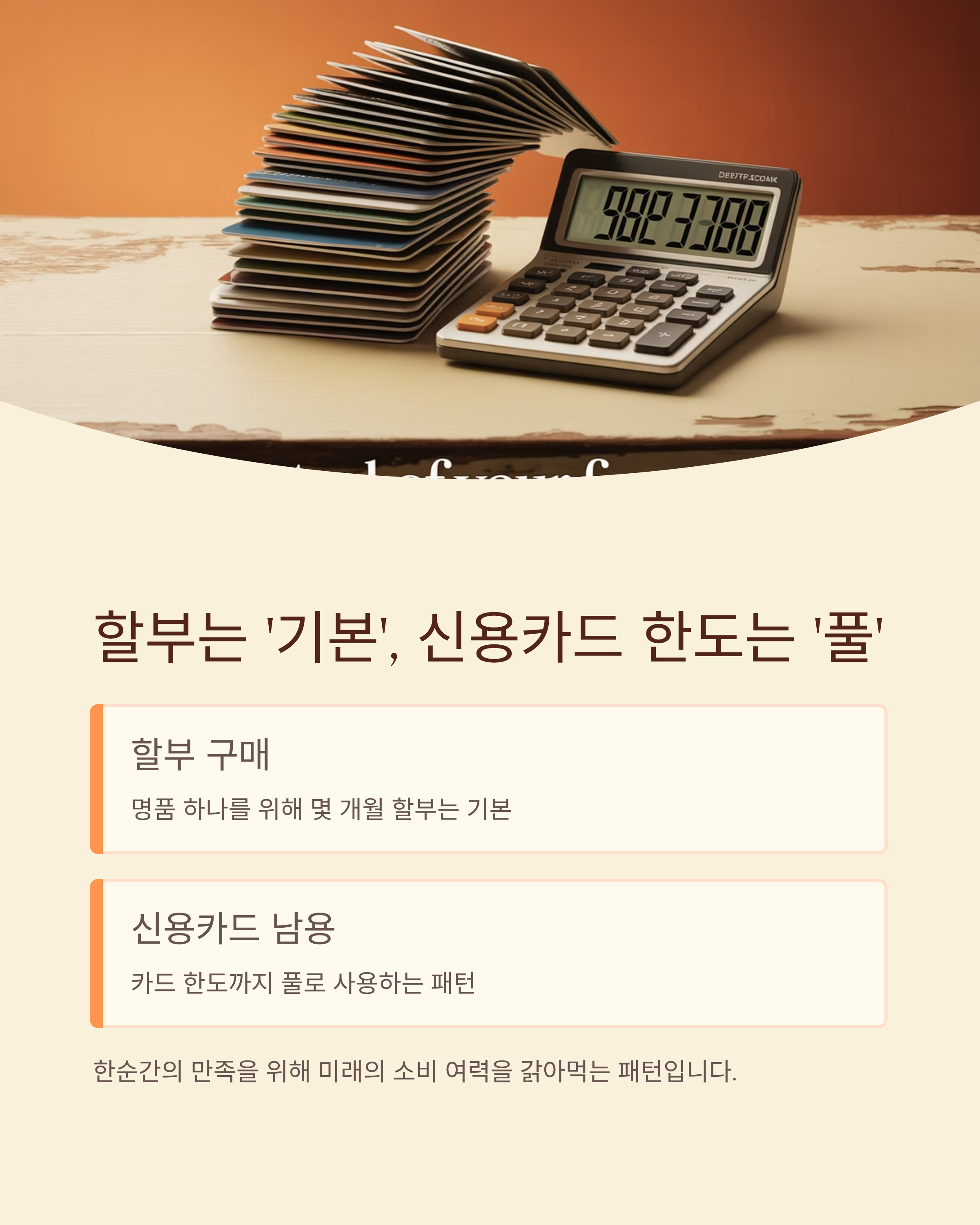명품 하나를 사기 위해 몇 개월 할부는 기본이고, 신용카드 한도까지 풀로 사용하는 경우도 많죠.