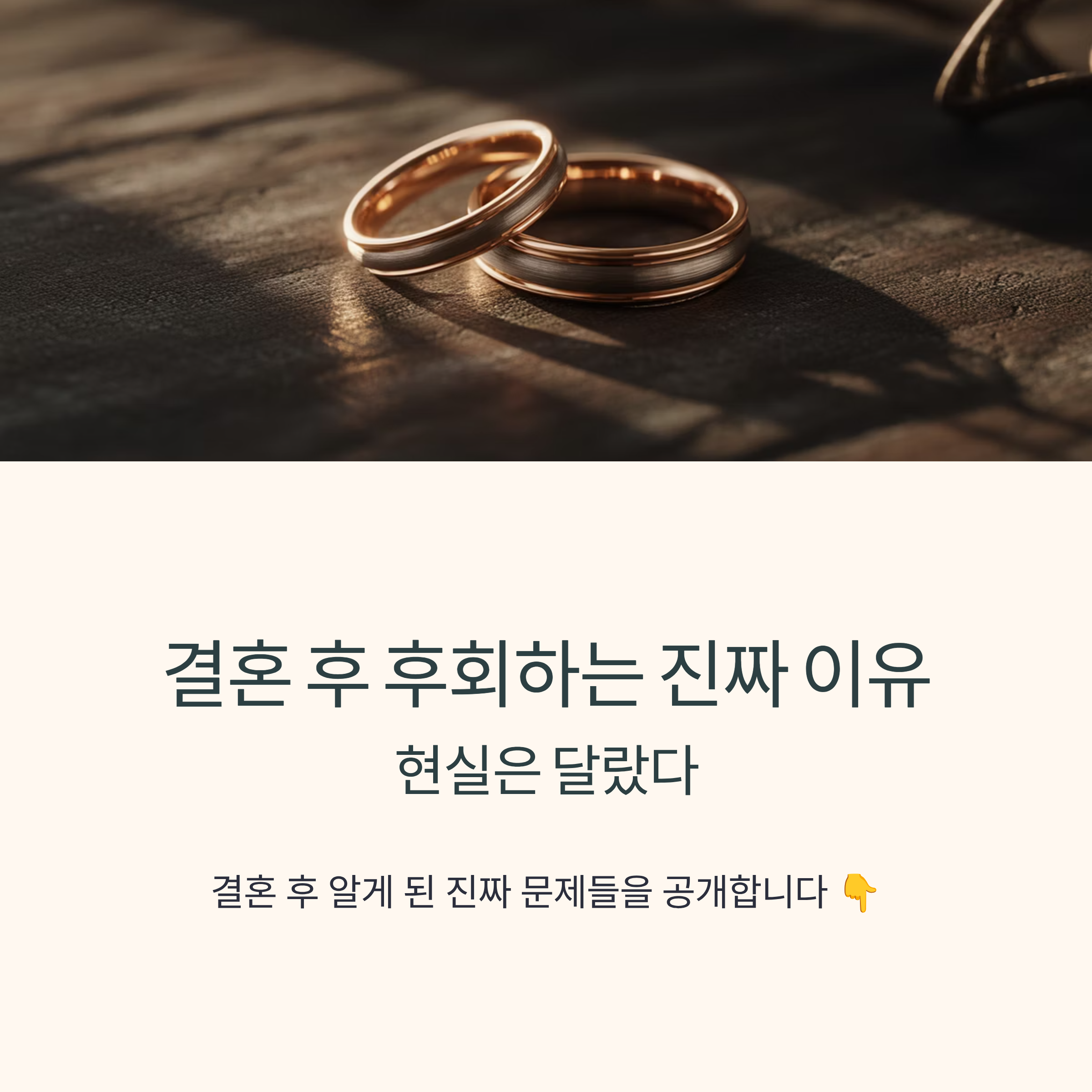 결혼 후 알게 된 진짜 문제, 왜 우리는 후회하게 될까?