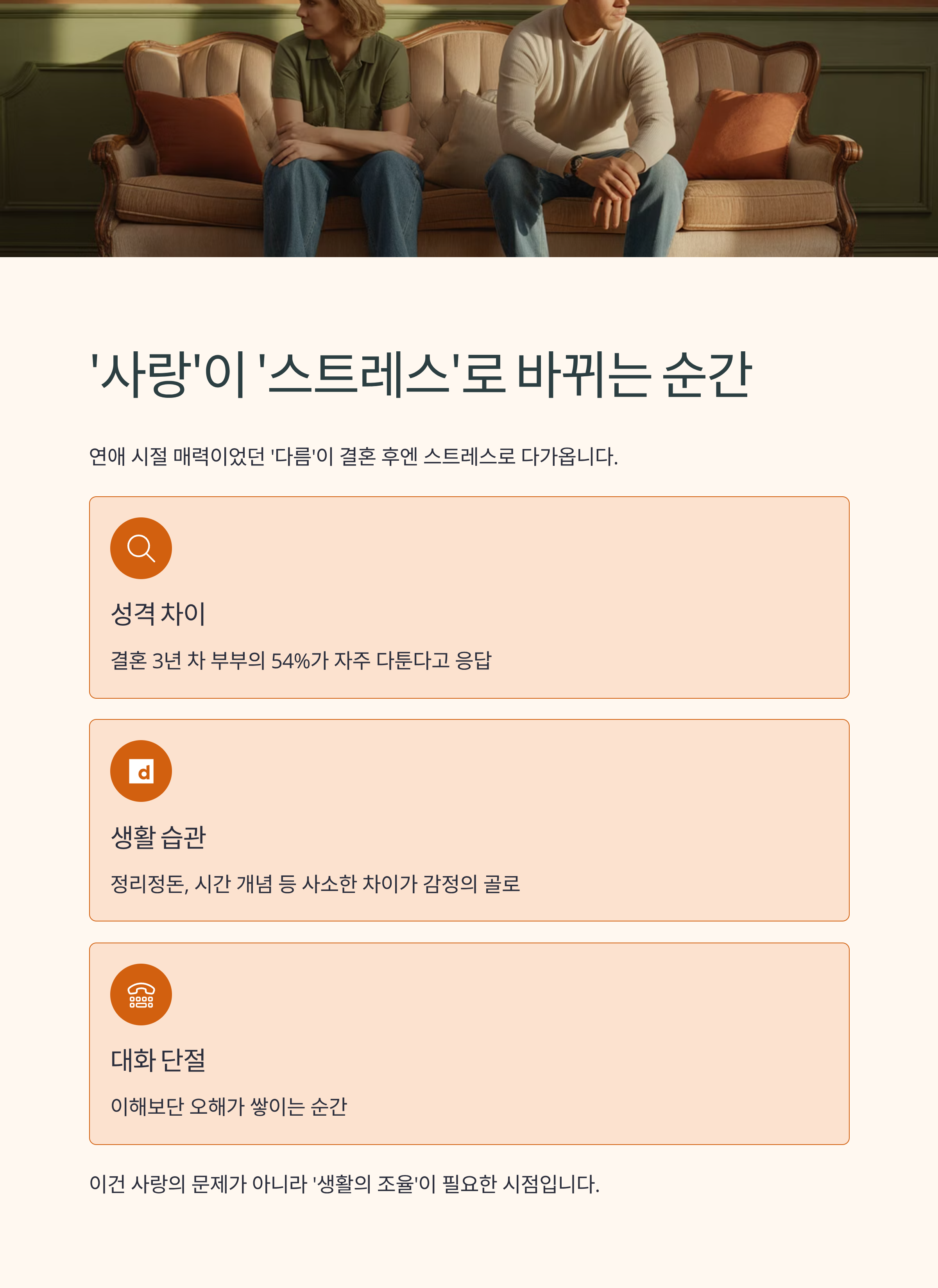 감정이 겹치는 순간, 대화가 줄고 이해보단 오해가 쌓입니다. 이건 사랑의 문제가 아니라 '생활의 조율'이 필요한 시점입니다.