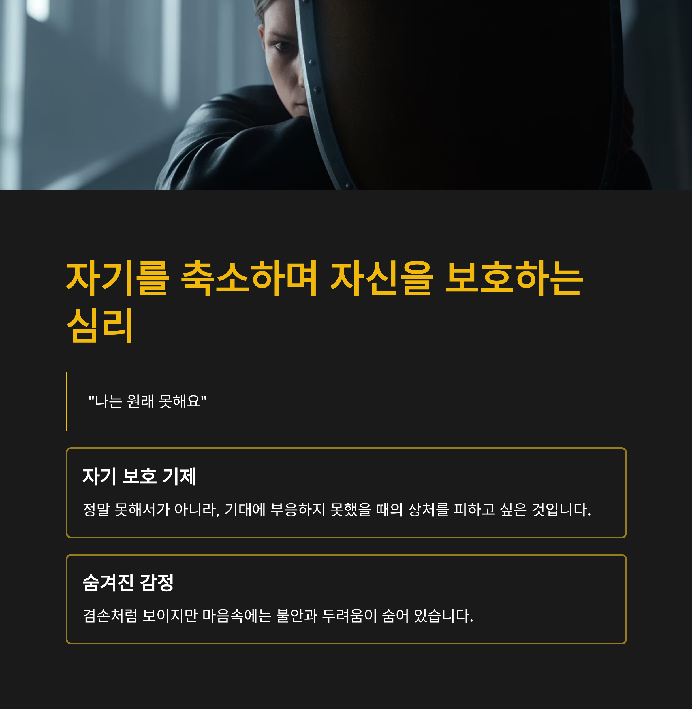 사실은 정말 못해서가 아니라, 기대에 부응하지 못했을 때의 상처를 피하고 싶은 거죠.