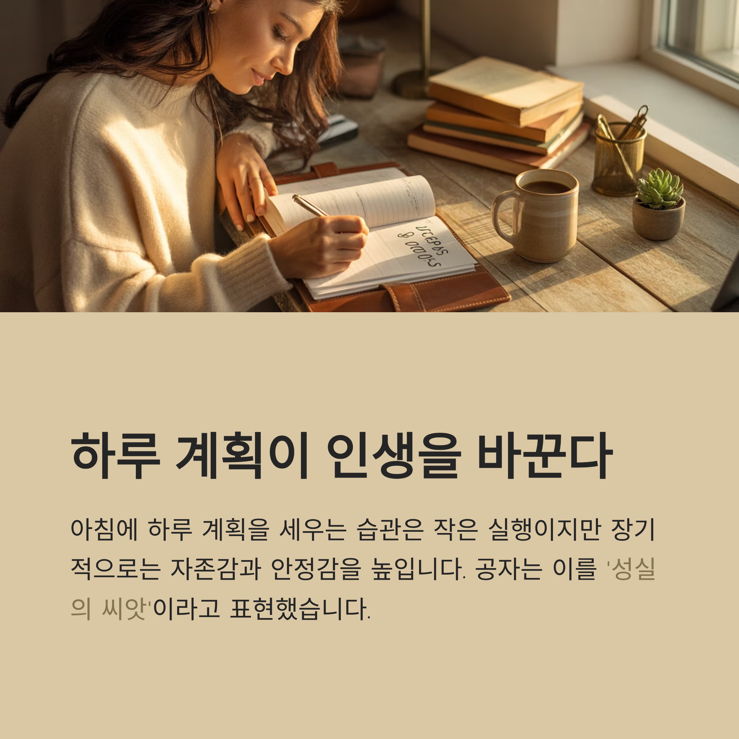 이는 공자의 가르침과 일치하며, 계획은 단순한 일정 관리가 아니라