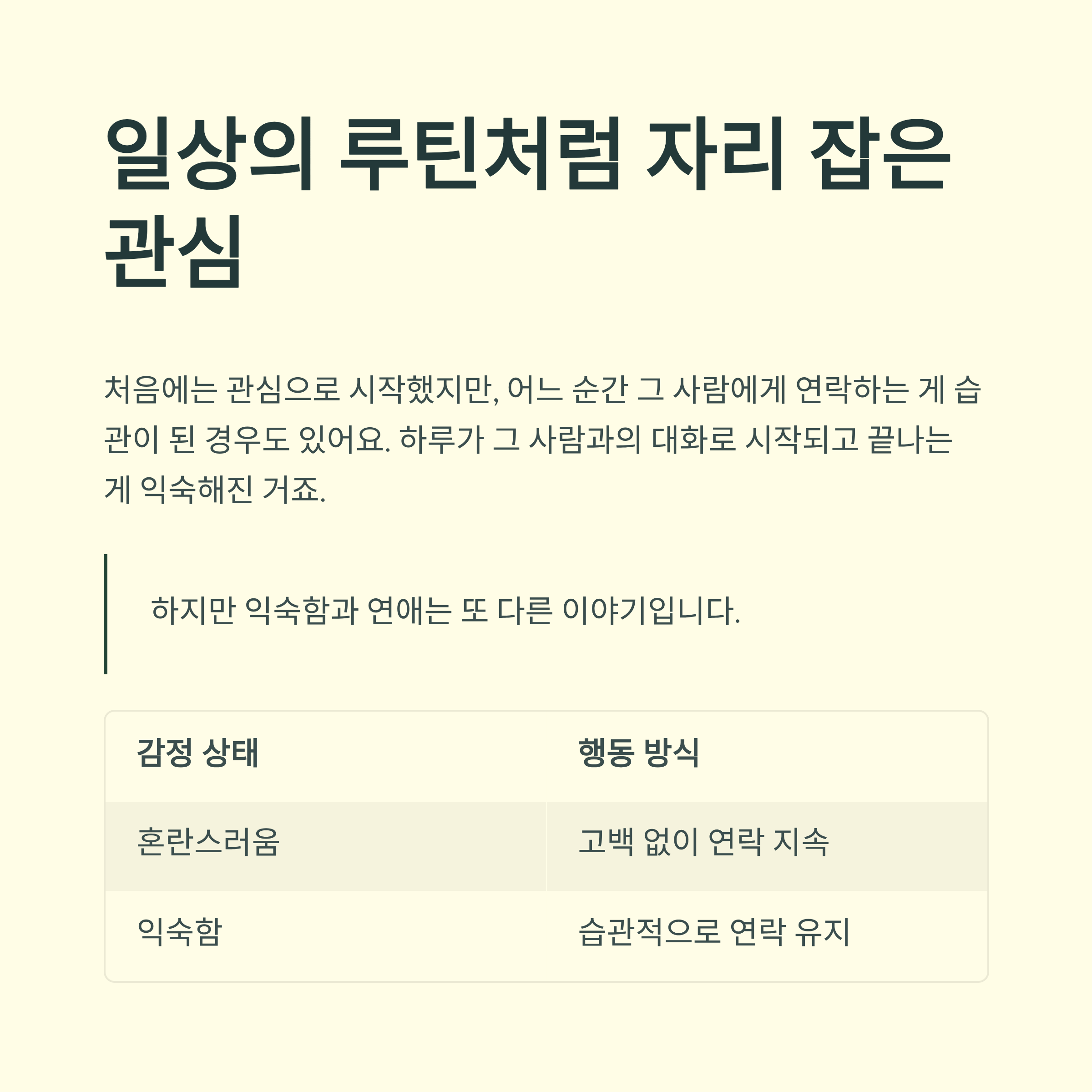 처음에는 관심으로 시작했지만, 어느 순간 그 사람에게 연락하는 게 습관이 된 경우도 있어요.
