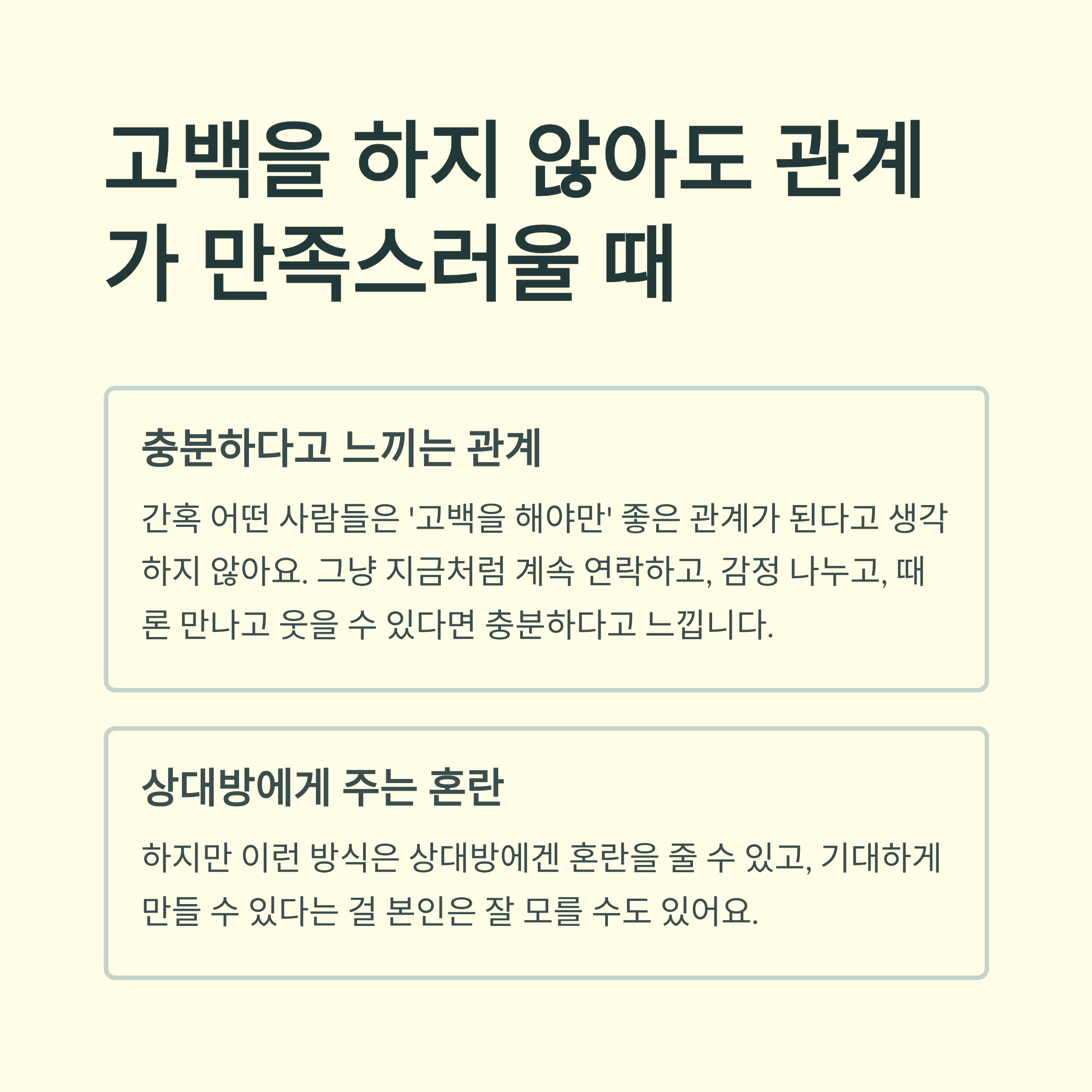 간혹 어떤 사람들은 ‘고백을 해야만’ 좋은 관계가 된다고 생각하지 않아요.