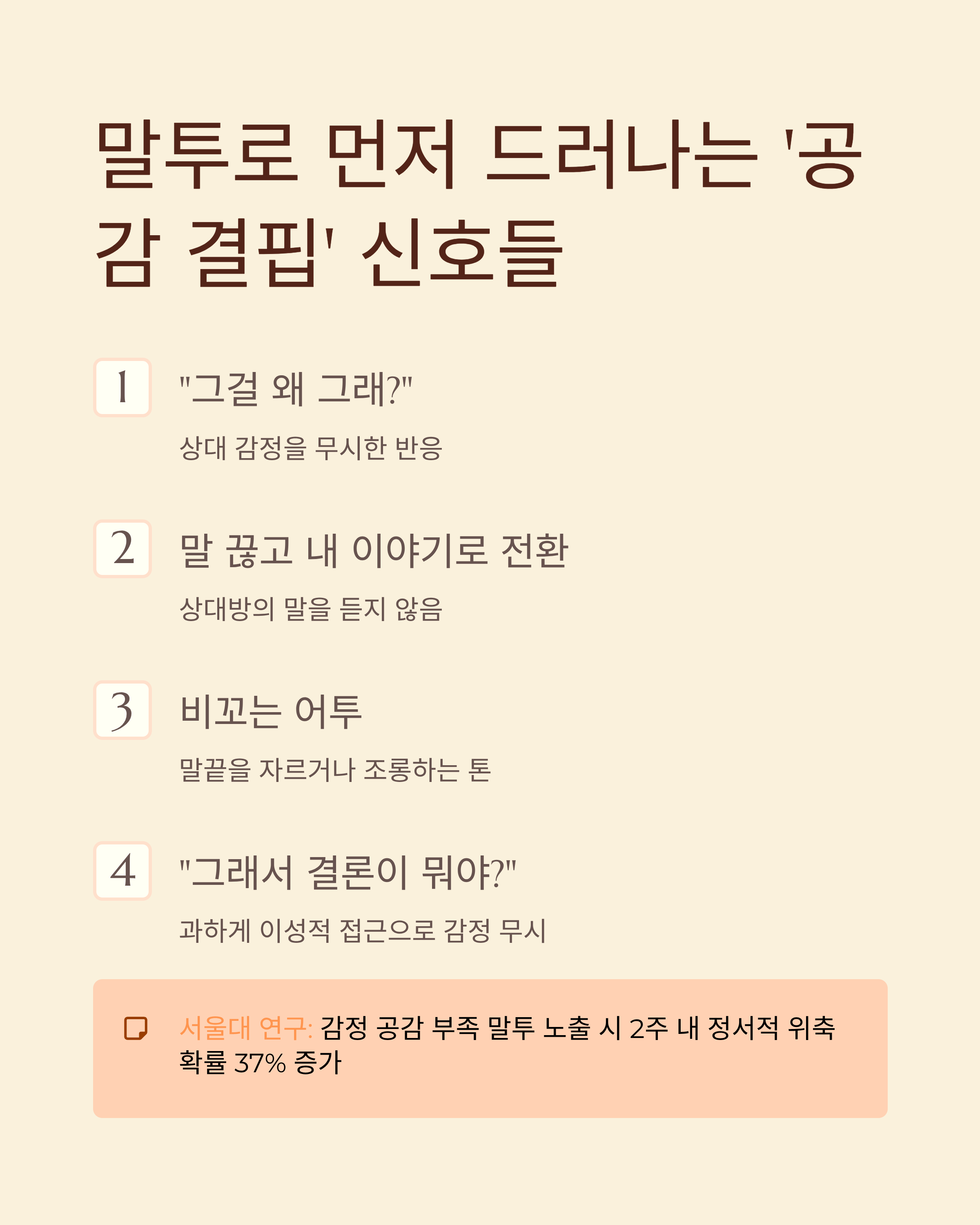 - 과하게 이성적인 접근으로 감정 무시 ("그래서 결론이 뭐야?")