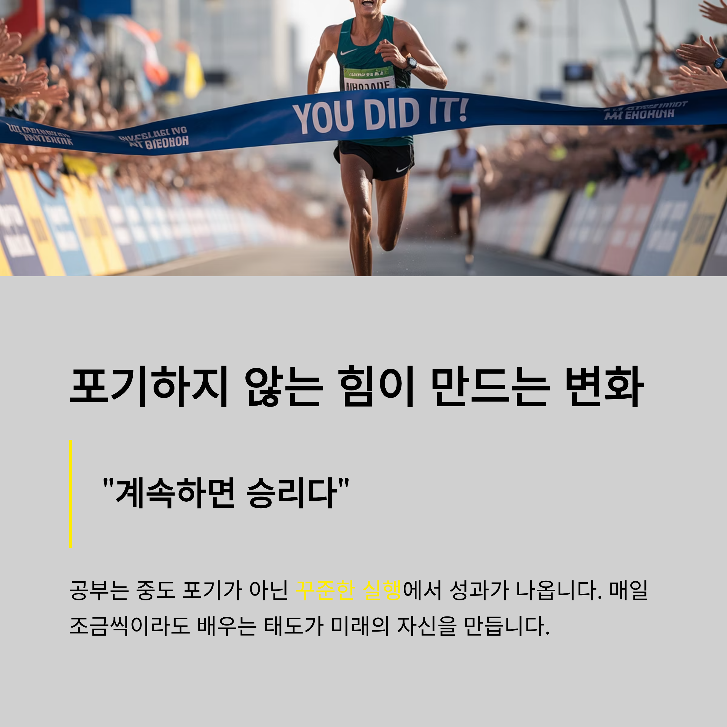 공부는 중도 포기가 아닌 꾸준한 실행에서 성과가 나옵니다.