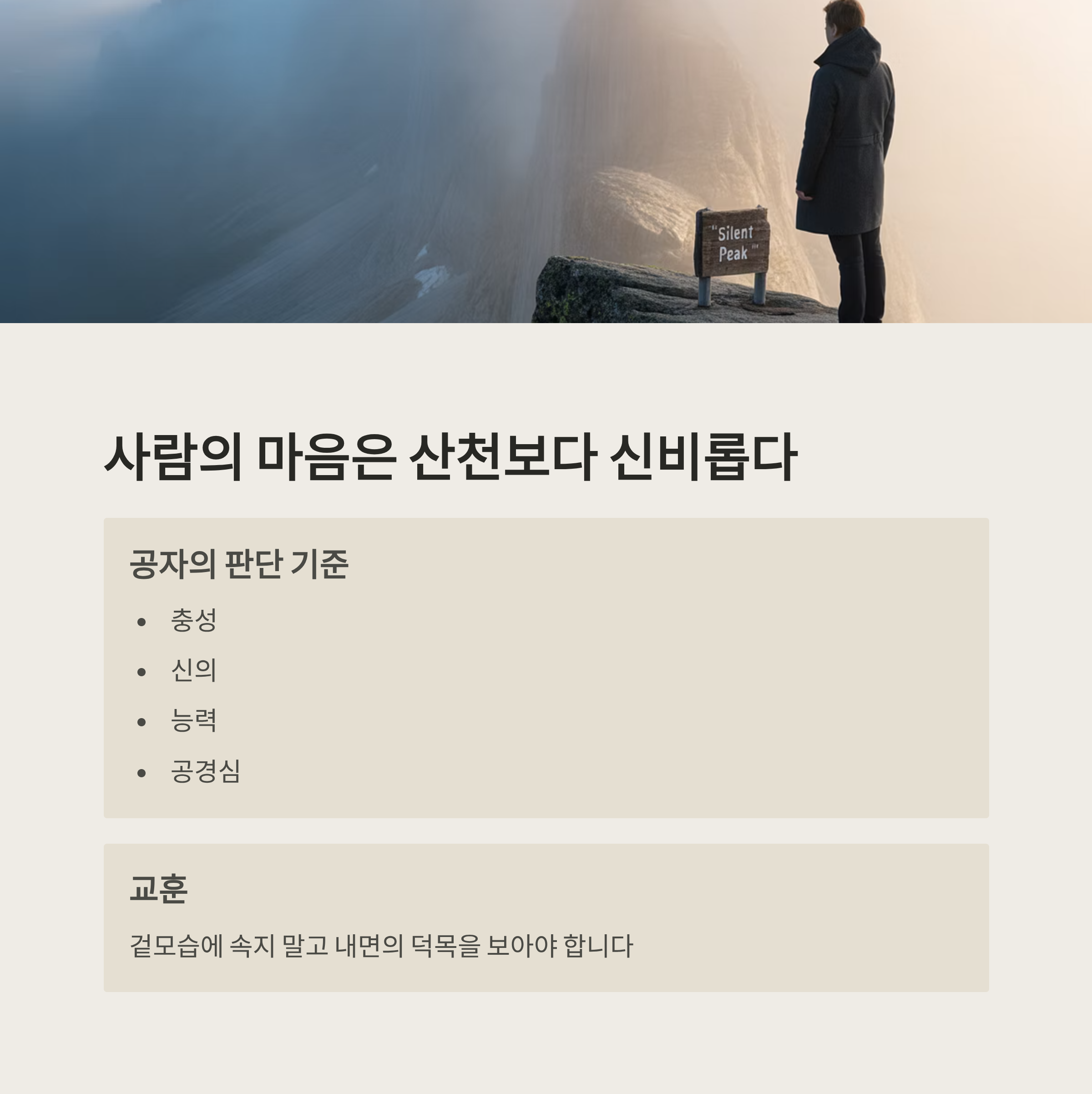 깊은 인품을 깨달았습니다. 이를 통해 공자는 외적인 요소가 아닌 마음과 행동이