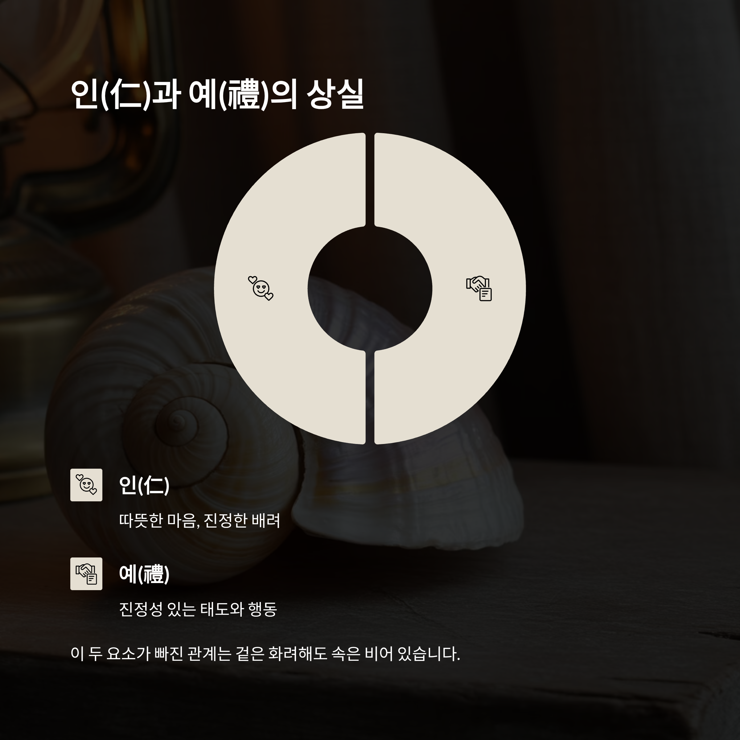 이 두 요소가 빠진 관계는 표면적으로 화려해 보여도 속은 비어 있습니다.