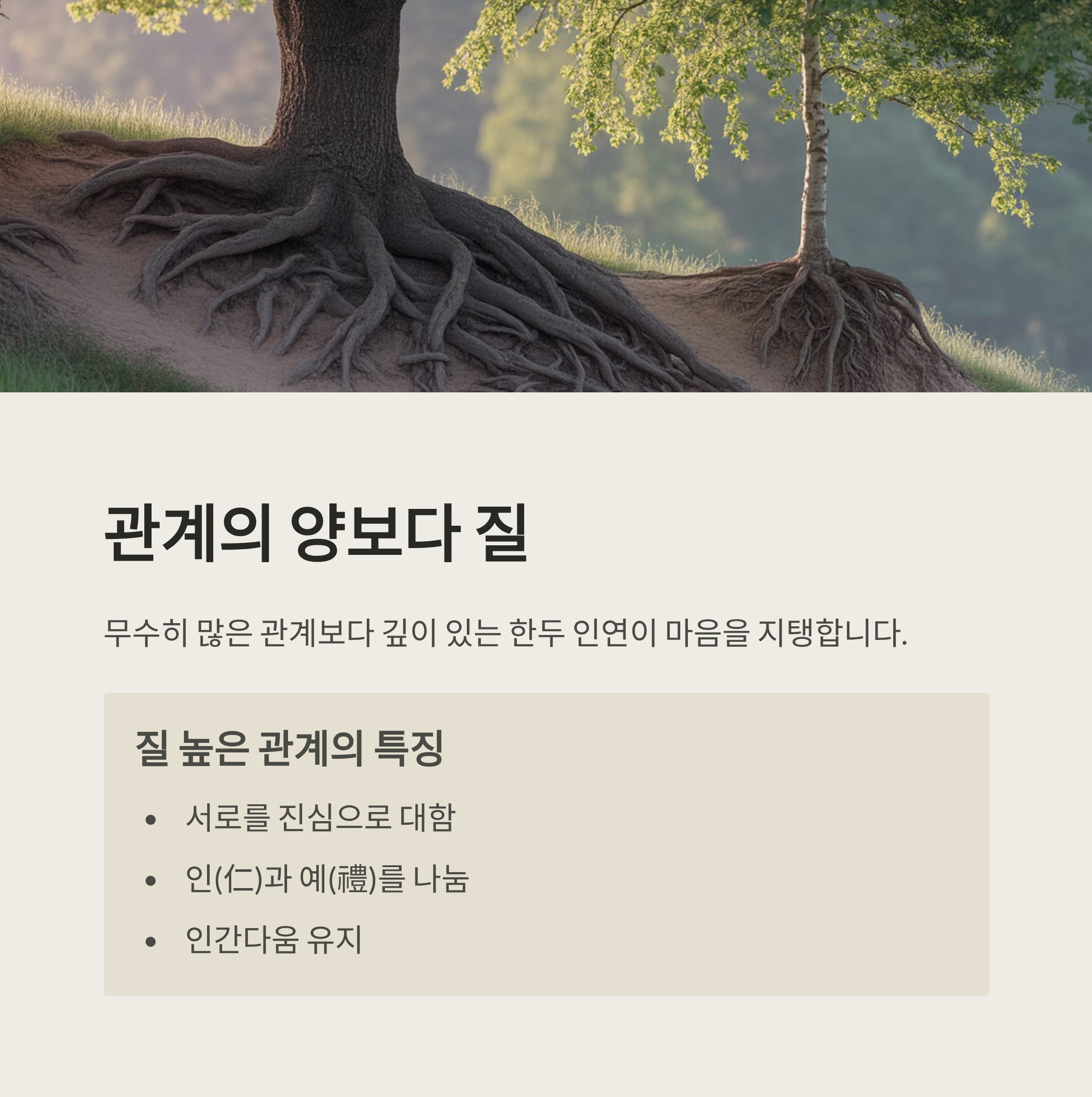 이런 관계 속에서는 서로를 진심으로 대하고, 인과 예를 나누며