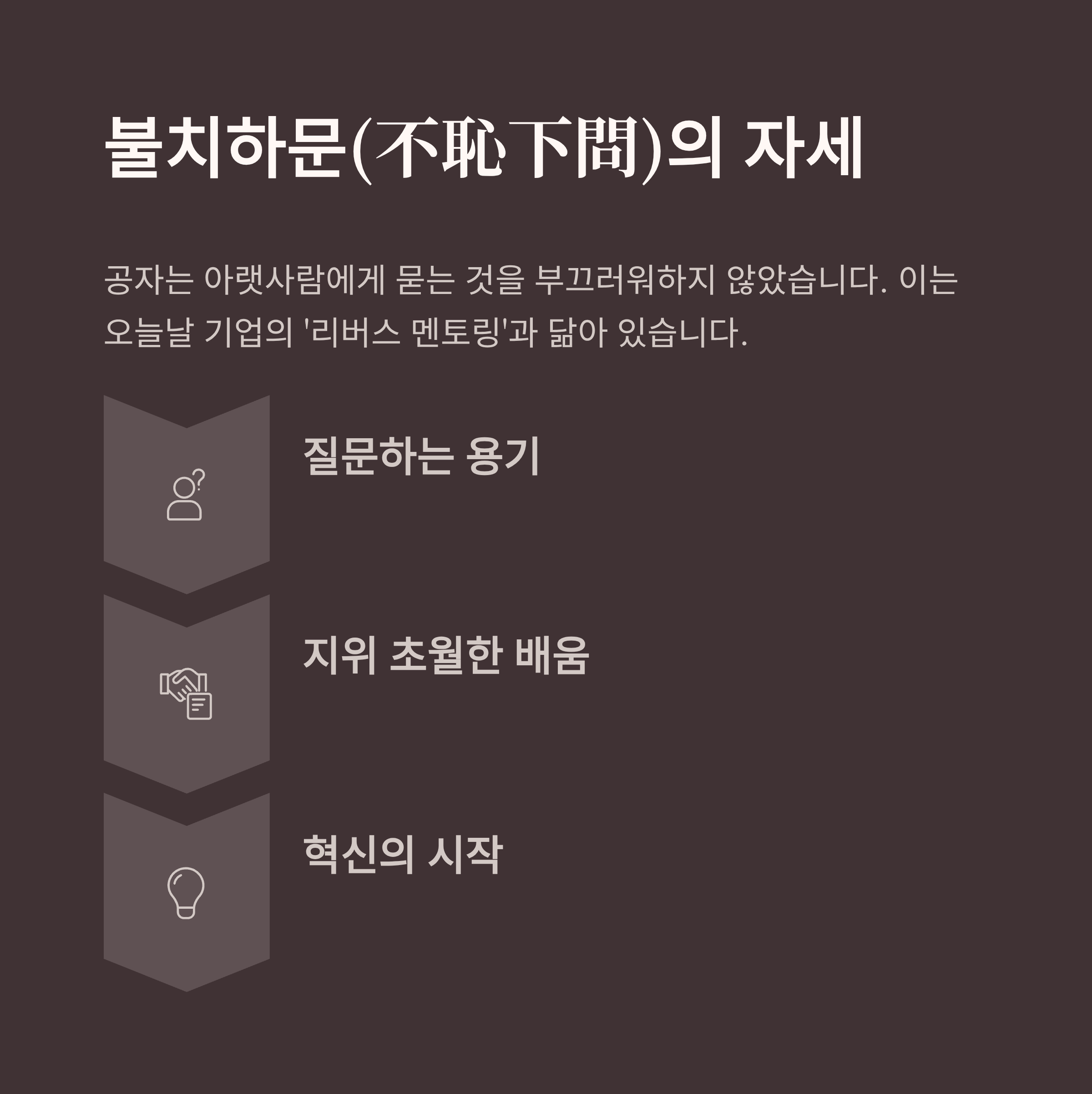 이 태도는 오늘날 기업의 ‘리버스 멘토링’과도 닮아 있습니다.