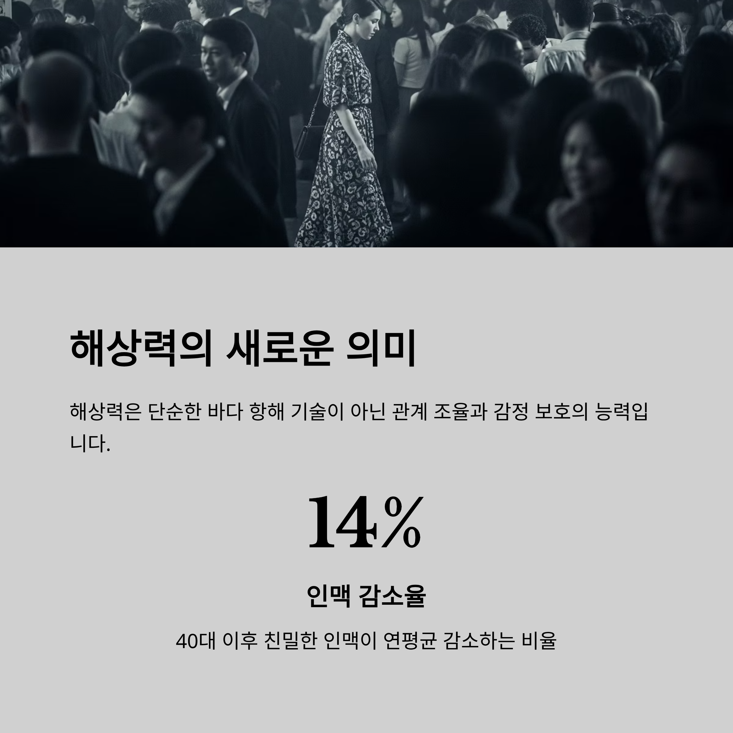 데이터에 따르면 40대 이후 친밀한 인맥 유지율은 연평균 14%로 감소하며,
