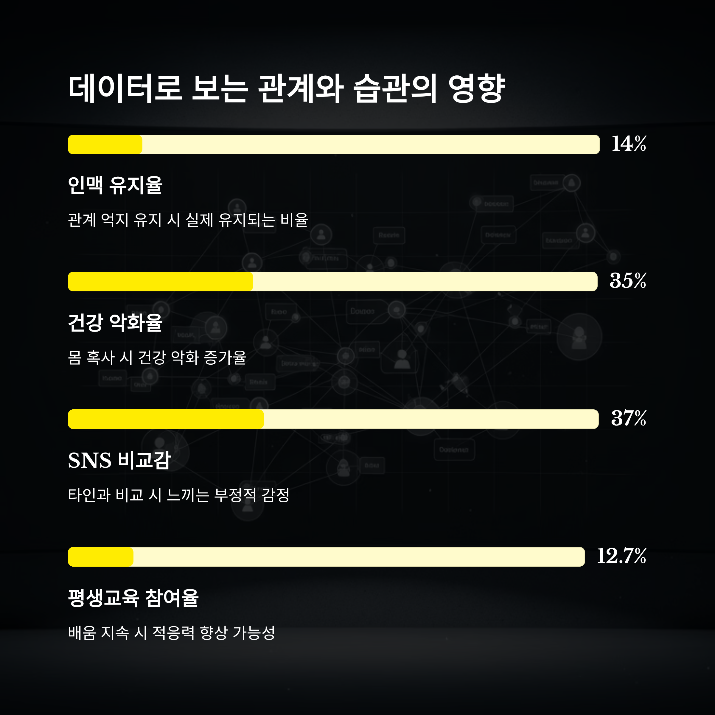 | 관계 억지 유지 | 인맥 유지율 14% | 에너지·감정 소모 |