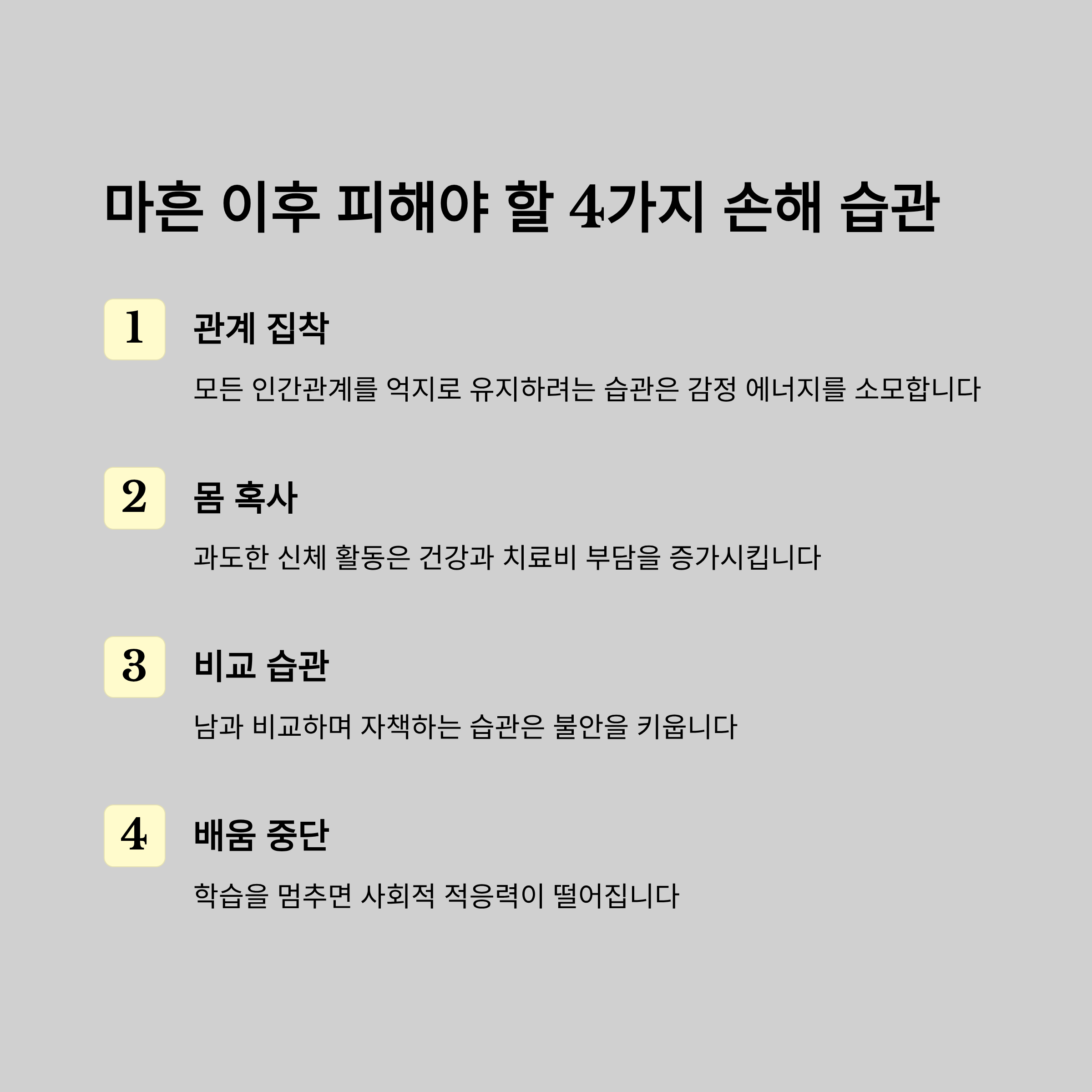 마흔 이후 피해야 할 4가지 손해 습관