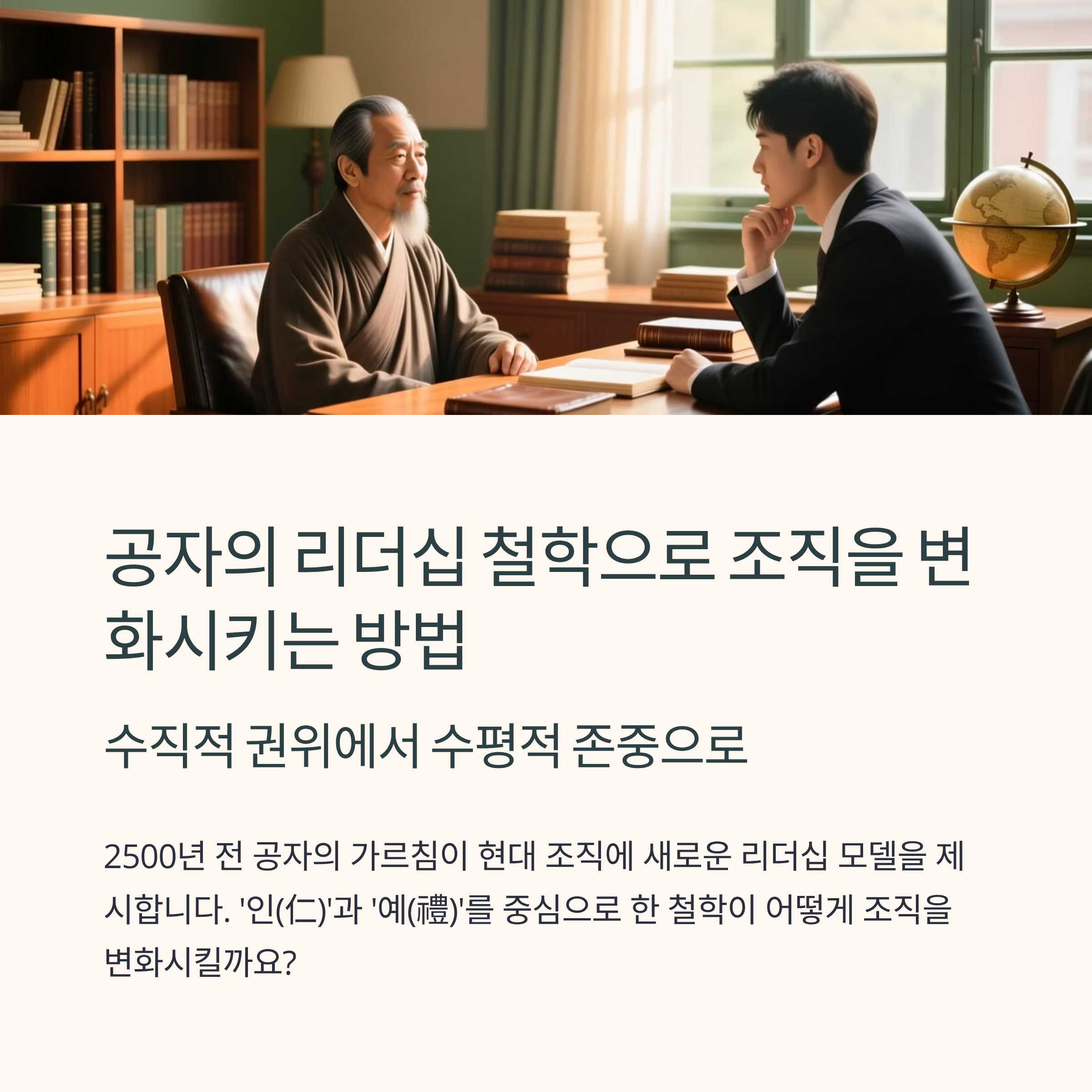 공자의 리더십 철학은 고대 중국의 정치와 윤리를 넘어 오늘날 기업 경영과 조직문화에까지 통찰을 제공합니다. 특히 ‘인(仁)’과 ‘예(禮)’를 중심으로 한 공자의 가르침은 수직적 권위가 아닌 수평적 존중과 책임을 강조하며, 지금 우리 조직에 새로운 리더십 모델로 적용될 수 있습니다. 이 글에서는 공자의 핵심 사상을 현대 조직에 접목했을 때 실제 어떤 변화가 일어날 수 있는지, 구체적 예시와 함께 살펴보겠습니다.