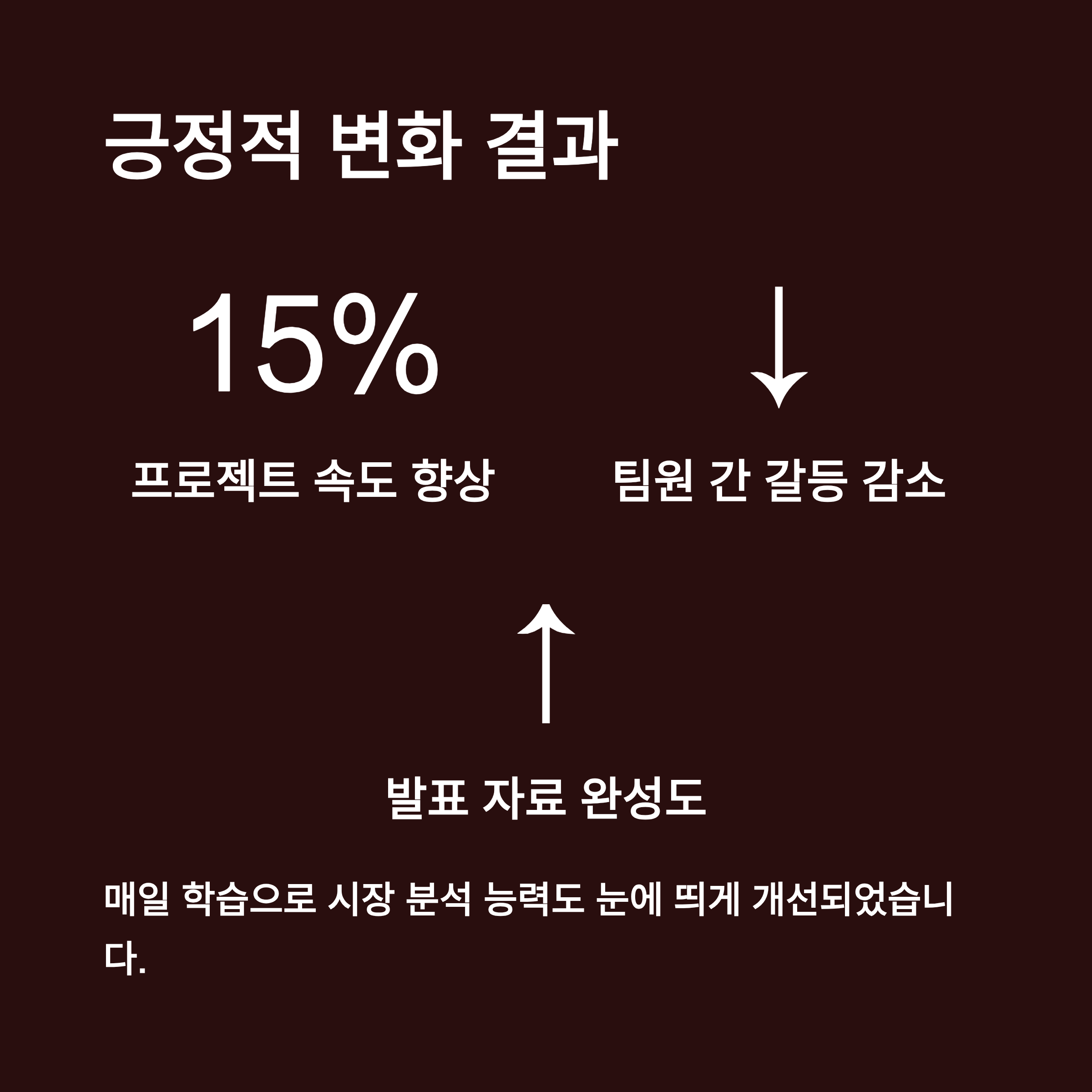 팀원 간 갈등이 현저히 줄어드는 결과가 있었습니다.