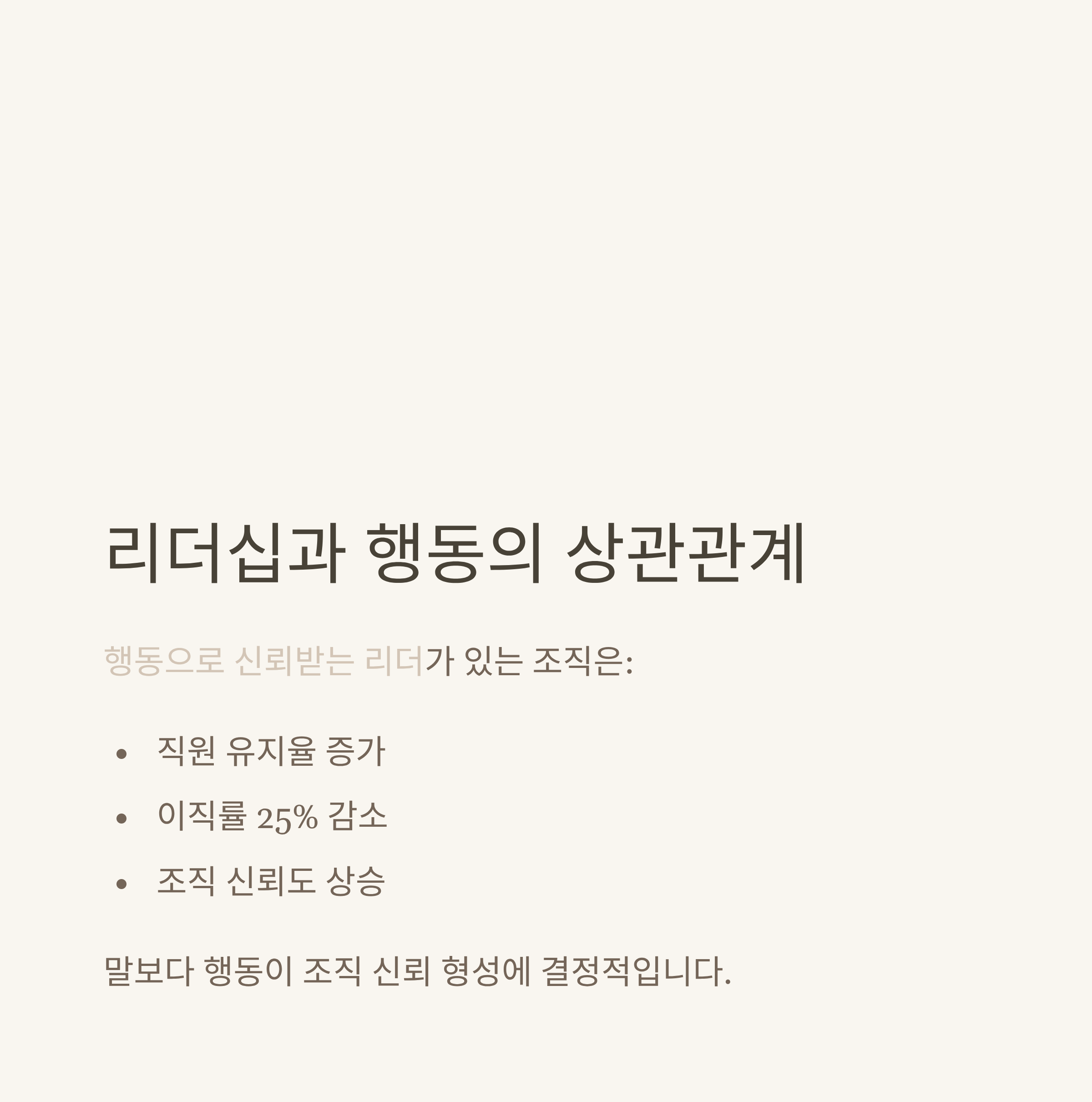 이는 말보다 행동이 조직 신뢰를 형성하는 데 결정적이라는 것을