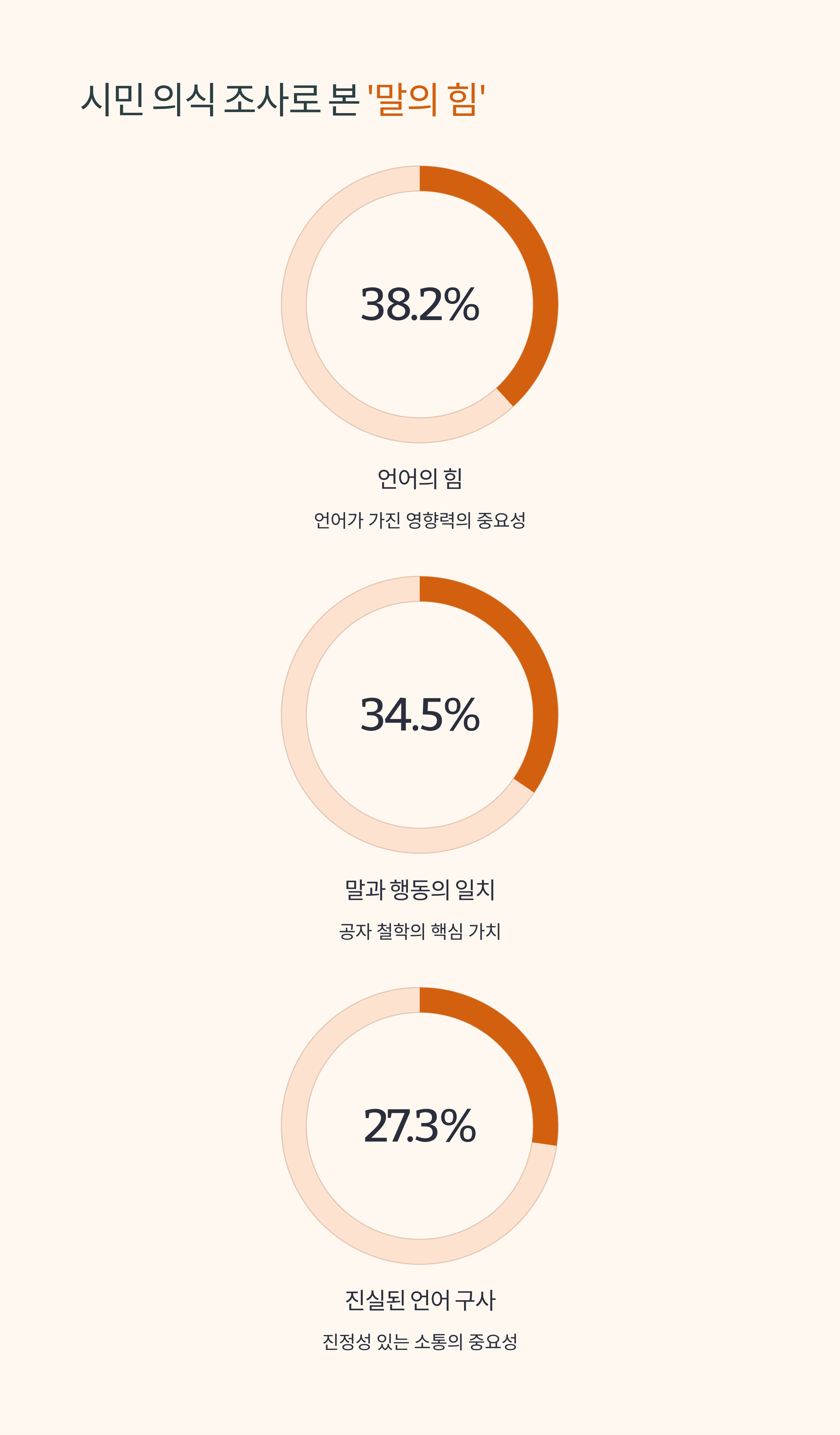 공자는 단순한 철학자가 아닌, 언어를 통해 세상을 움직이고자 했던 실천적 지식인이었습니다. 『논어』 속 그의 말에는 항상 진실성과 신중함이 깃들어 있으며, 오늘날에도 정치·교육·사회 전반에서 활용되고 있습니다. 특히 '말과 행동의 일치', '진실된 언어', '군자의 말하기 태도' 등은 2025년 대한민국 설문조사 결과에서도 그 가치가 높게 평가되고 있어, 공자의 언어철학은 고전에서 그치지 않고 현재와도 깊이 맞닿아 있습니다.