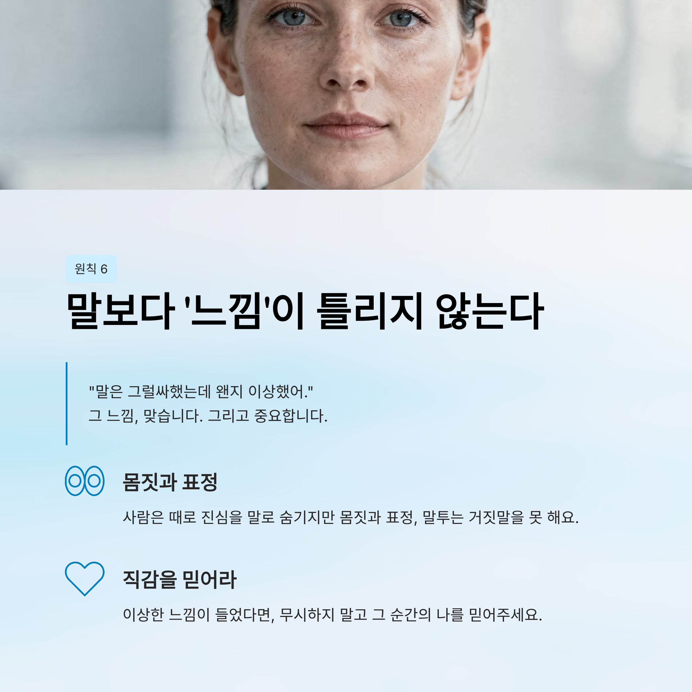 | 6번 | 직감 신뢰 | 말보다 느낌 듣기 |