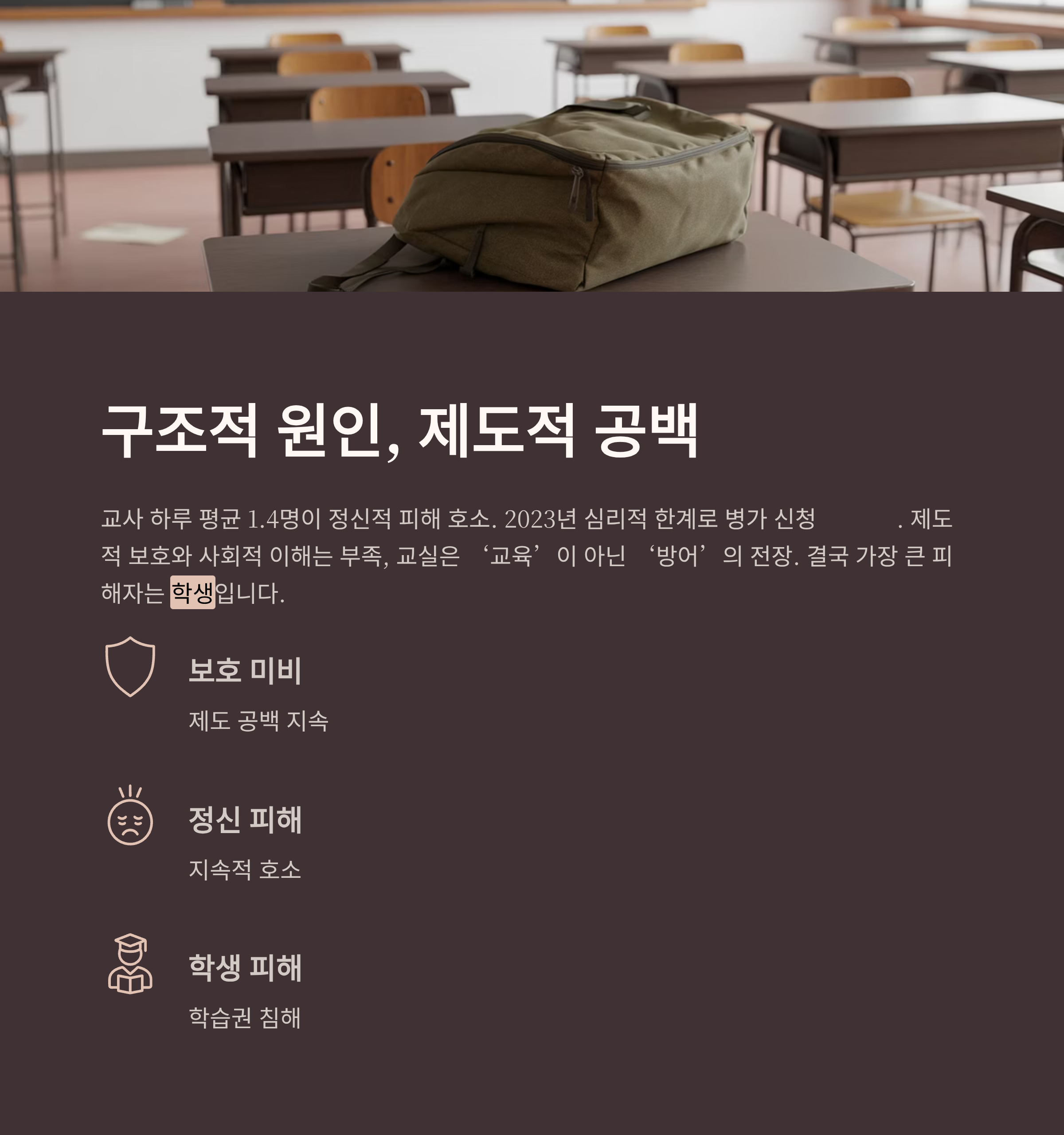 ‘교육’을 위한 환경이 아닌, ‘방어’를 위한 전쟁터가 된 교실.