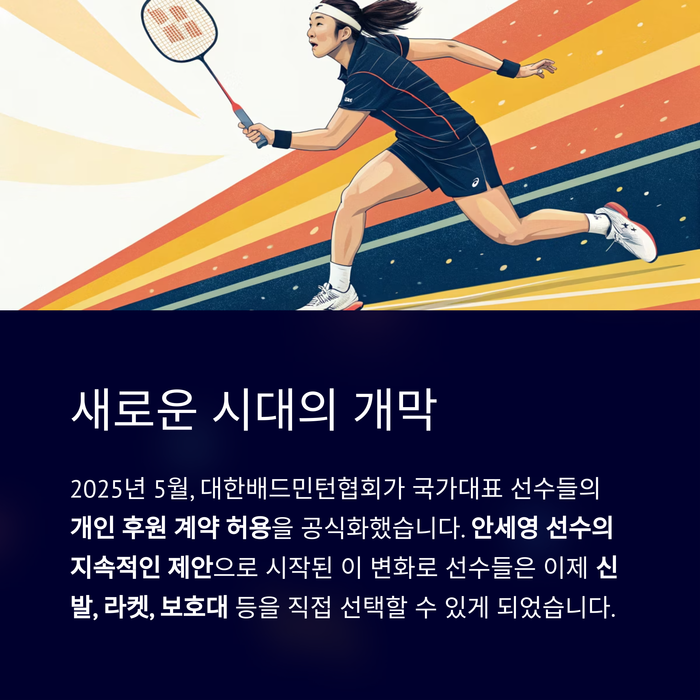 2025년 5월 5일, 대한배드민턴협회가 국가대표 선수들의 개인 후원 계약 허용을 공식화하며