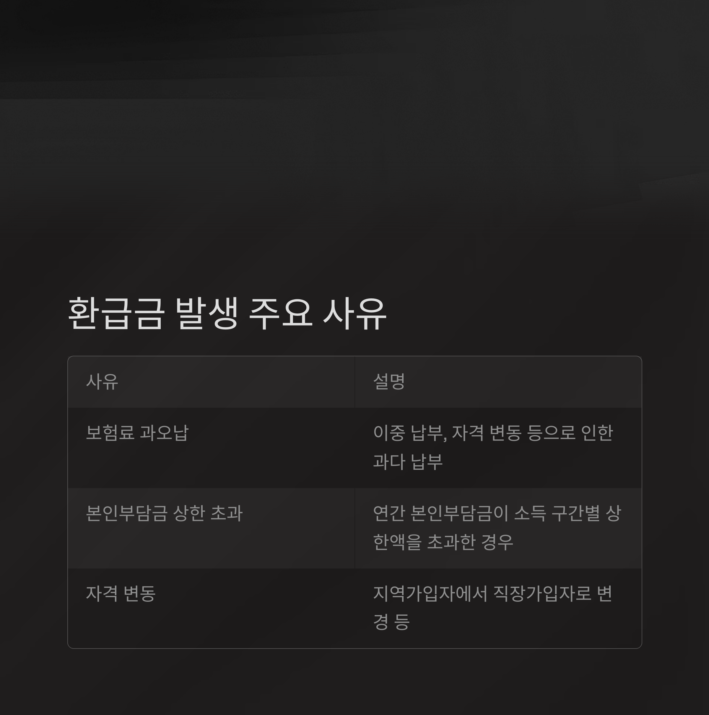 | 자격 변동 | 지역가입자에서 직장가입자로 변경 등 자격 변경으로 인한 환급 발생 |