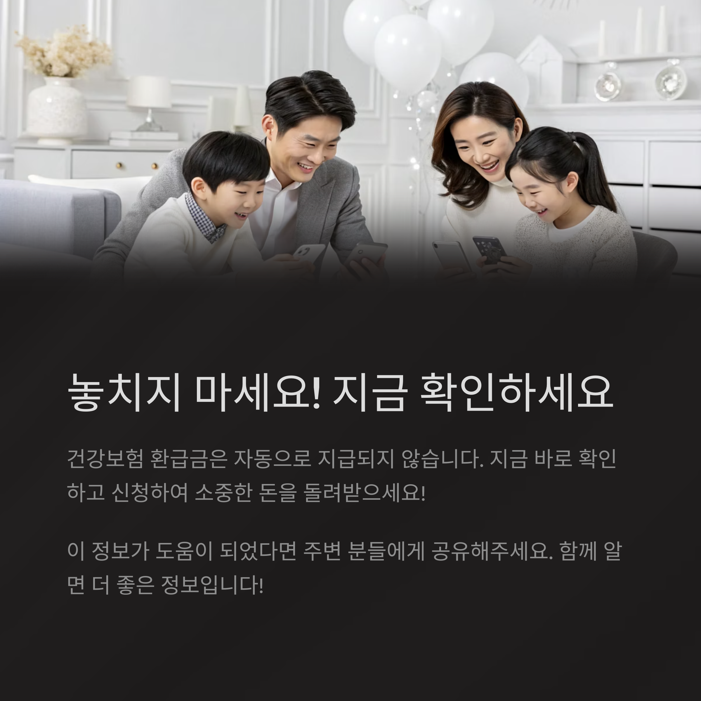 건강보험료 환급금은 자동으로 입금되지 않으며, 직접 조회하고 신청해야만 받을 수 있습니다. 신청하지 않으면 3년 후 국고로 귀속되니, 지금 바로 확인해보세요.