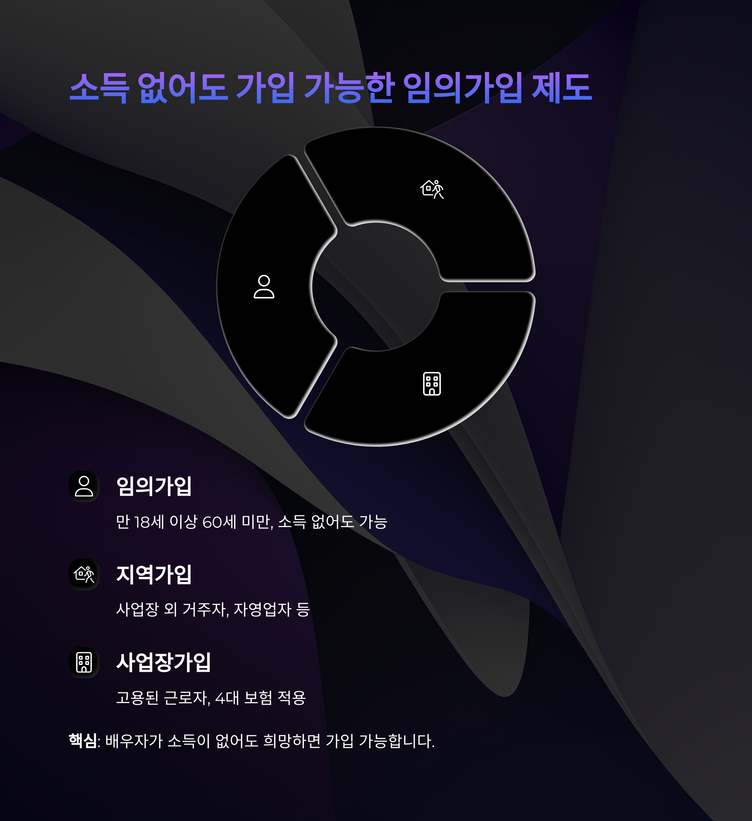 핵심: 배우자가 소득이 없어도 희망하면 가입 가능하며,